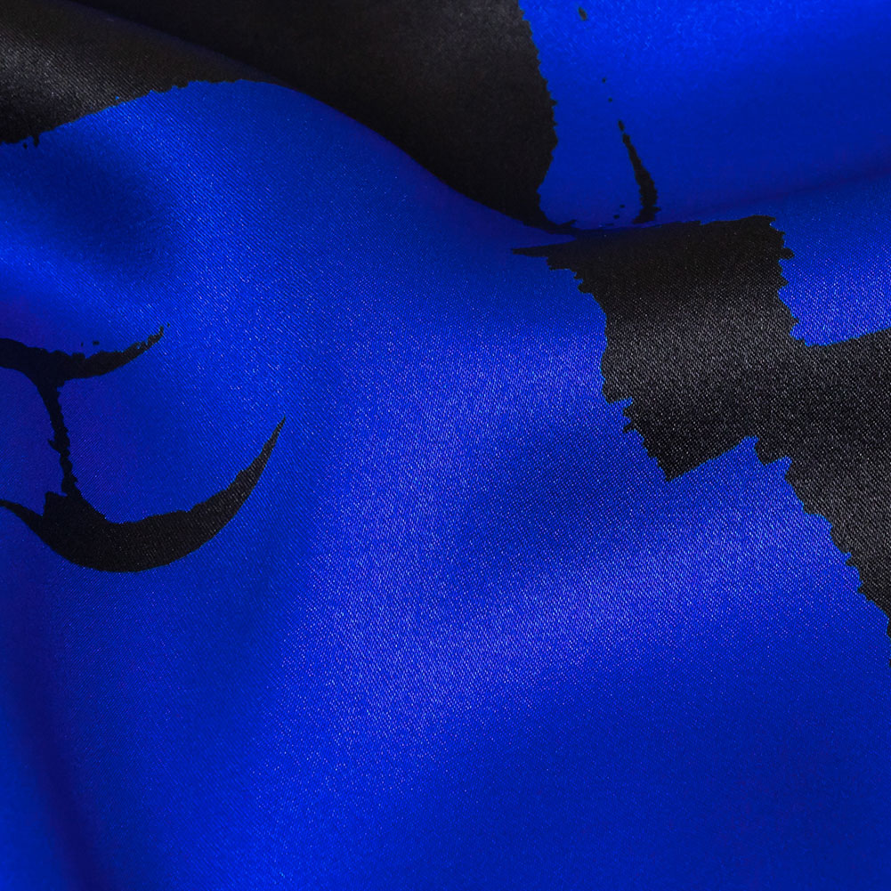 If you've got the blues, our Mood Exclusive Italian Royal Blue and Black Brushstrokes Silk Charmeuse is sure to cheer you up! Graphic black brushstrokes streak and glide across a royal blue ground. Fluid and lightweight, this silk charmeuse is of the highest quality, with a smooth, slippery feel adding to its luxurious look. Create slip dresses and bias-cut evening gowns, dreamy lingerie, or effortless dusters. Translucent, particularly with lighter shades, a lining may be added to increase opacity and structure but isn't of necessity.
