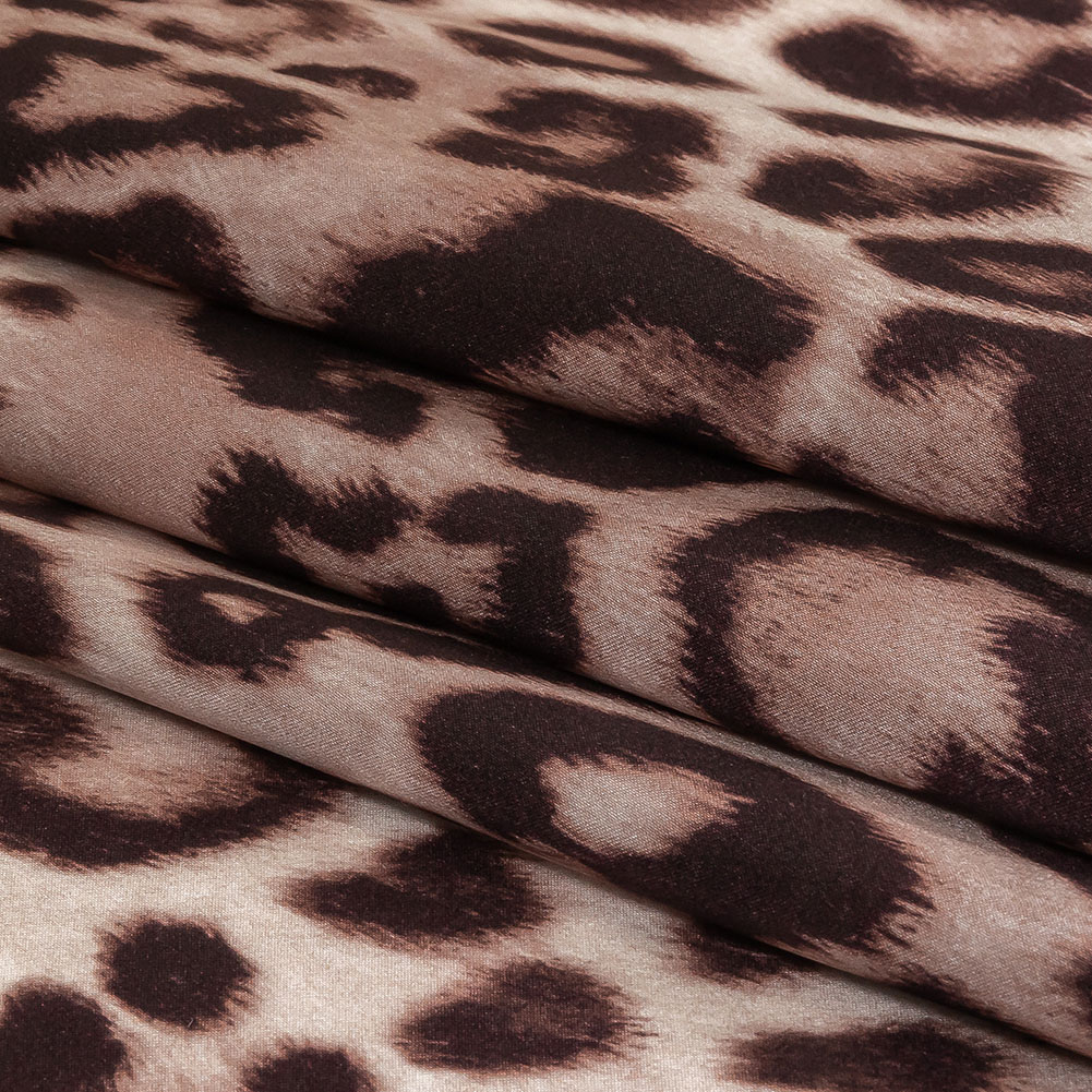 Mood Exclusive Italian Taupe and Black Leopard Printed Silk Charmeuse