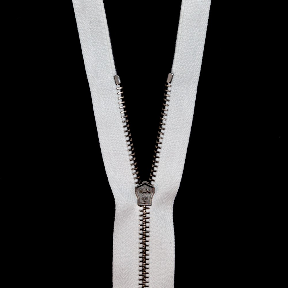 Mood Exclusive Italian White and Gunmetal T3 Open End Metal Zipper - 27.5"