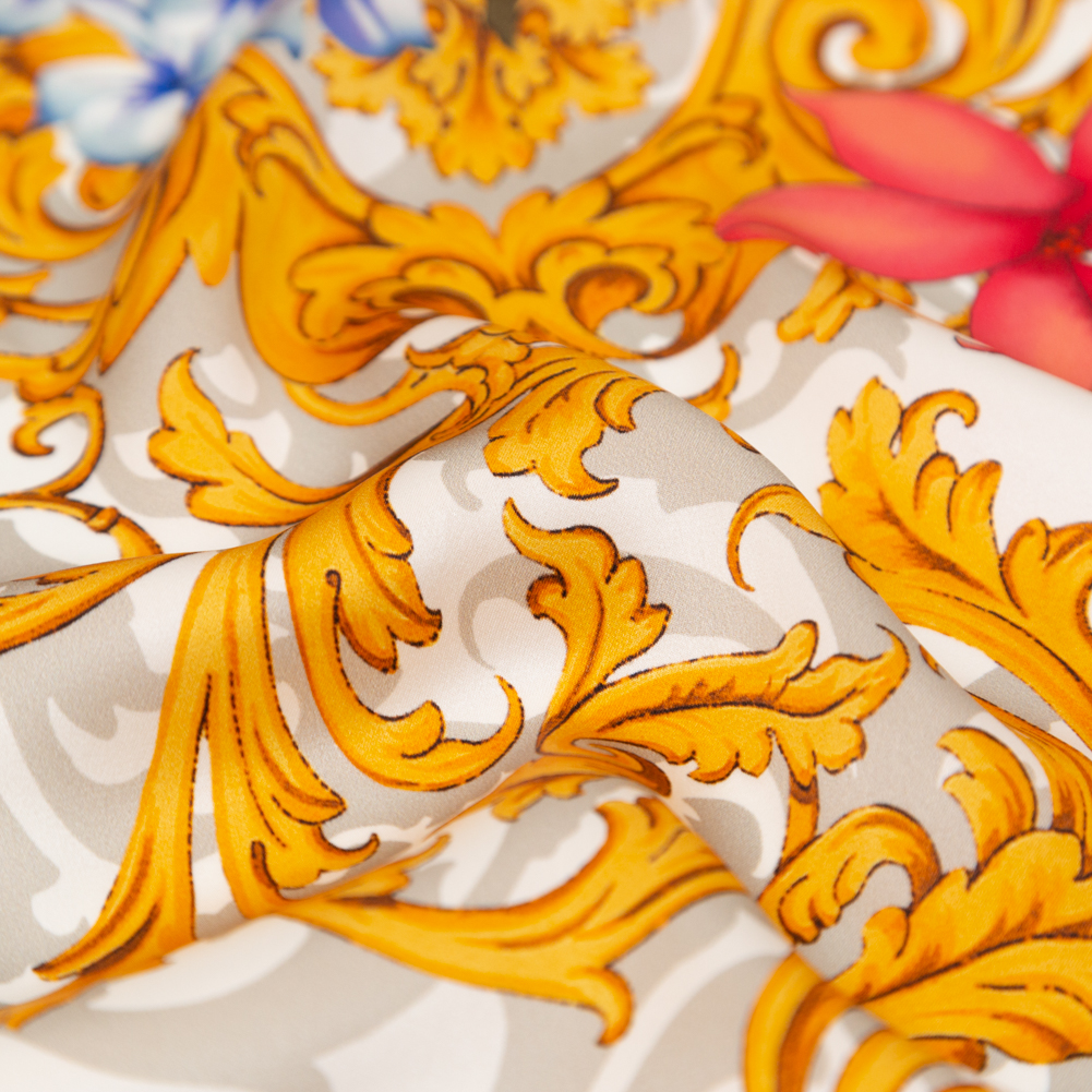 Mood Exclusive Italian White, Blush and Gold Ornate Floral Digitally Printed Silk Charmeuse