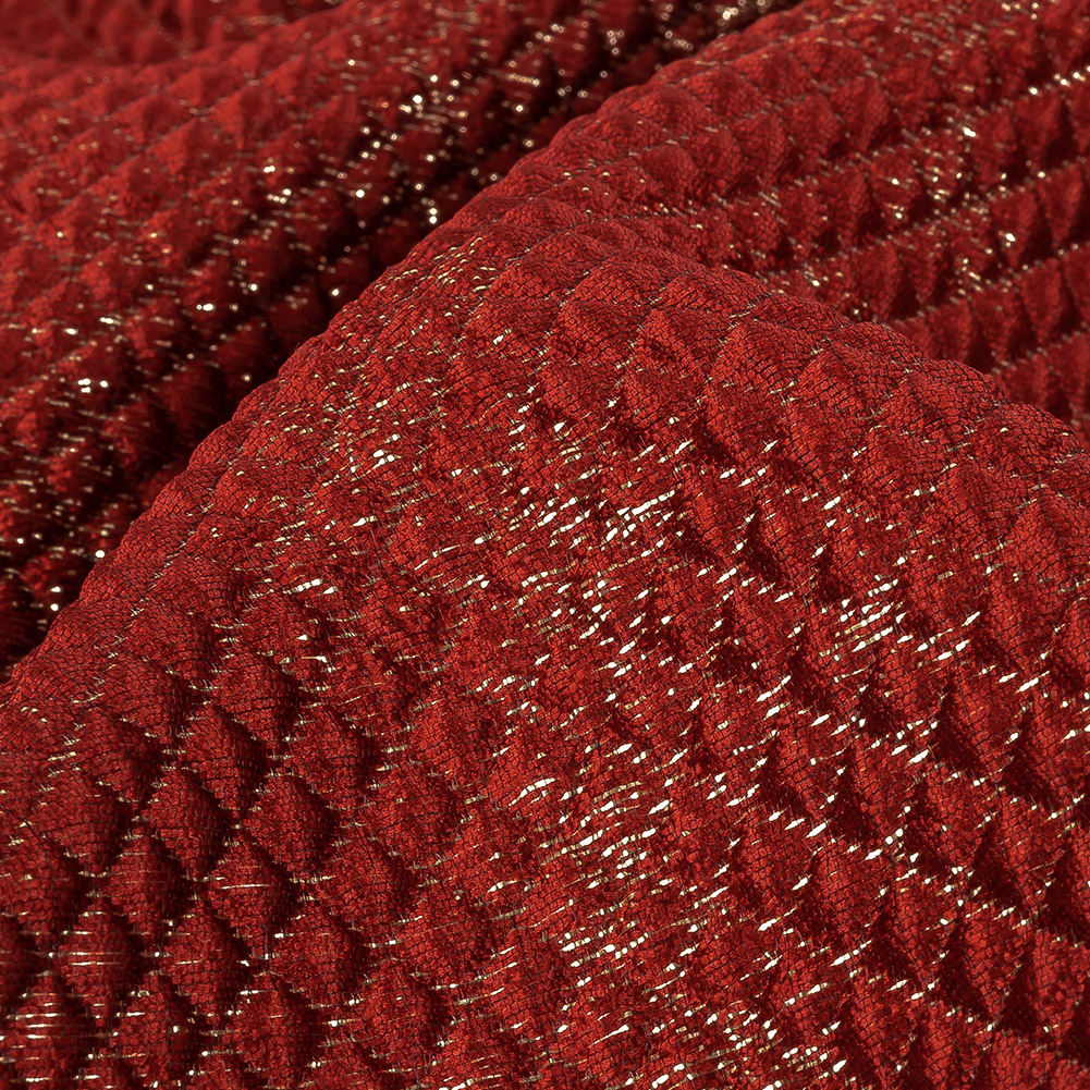 Mood Exclusive Jolene Metallic Red and Gold Tiny Diamonds Quilted Luxury Brocade