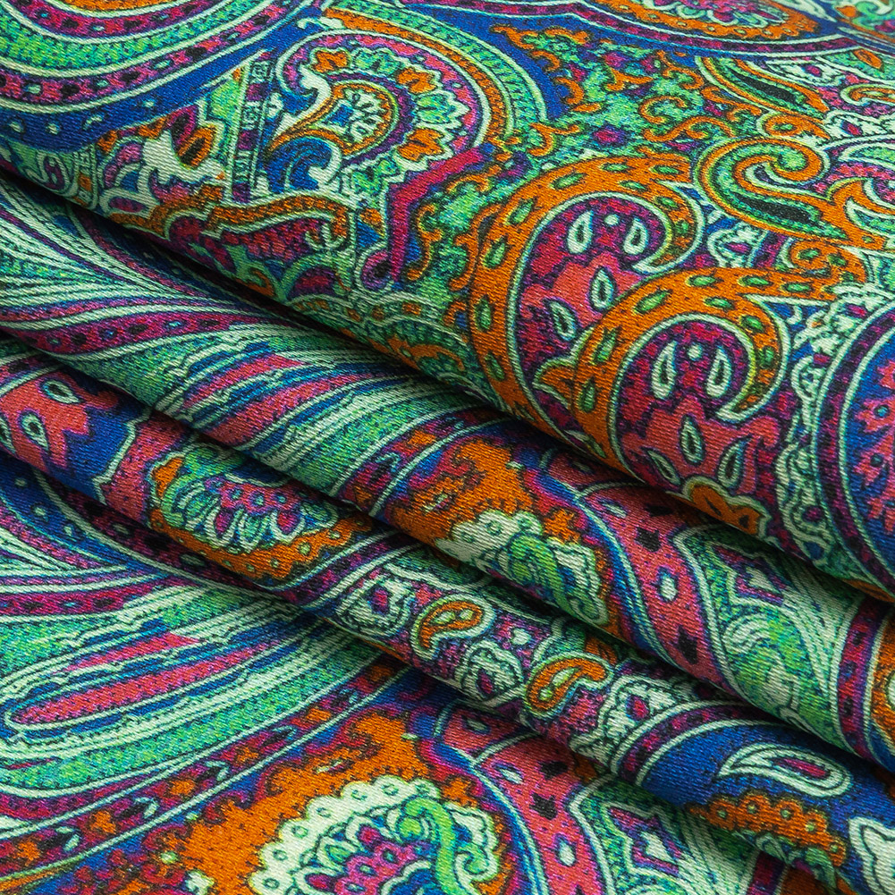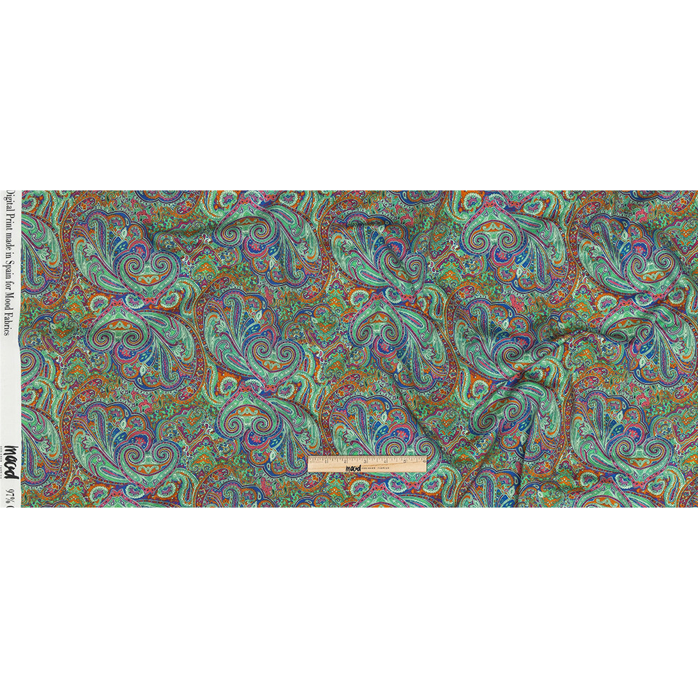 Mesmerizing and hypnotic, this stunning Mood Exclusive Katydid Curling Convolutions Stretch Cotton Sateen will put you under its spell. Swirling, Jacobean-inspired patterns of show-stopping orange and mint green flow effortlessly into awaiting pools of deep navy and bright pink. Soft and smooth in hand, its medium weight construction offers a 10% stretch through the weft. With a slightly crisp, malleable drape, create delightful shift dresses, voluminous wrap skirts, and casual surplice blouses. Swing by our Mood Sewciety Blog to take a glance at our free Lantana Maxi Shirt, Daylily Skirt, Cypress Dress, Nepeta Blazer, Nymania Pants, Dogwood Ensemble and Ulmus Dress sewing patterns for more inspiration.