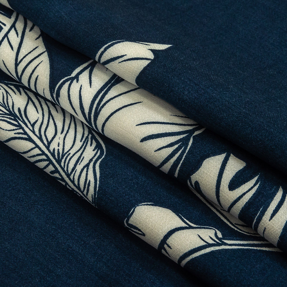 Search the woods for sprouting fronds, and you never know what you might find in our Mood Exclusive Kupala Night Rayon Challis! Named for a Slavic tradition that celebrates ferns growing once a year, leaves dance against a midnight blue ground, as if illuminated by a full moon.