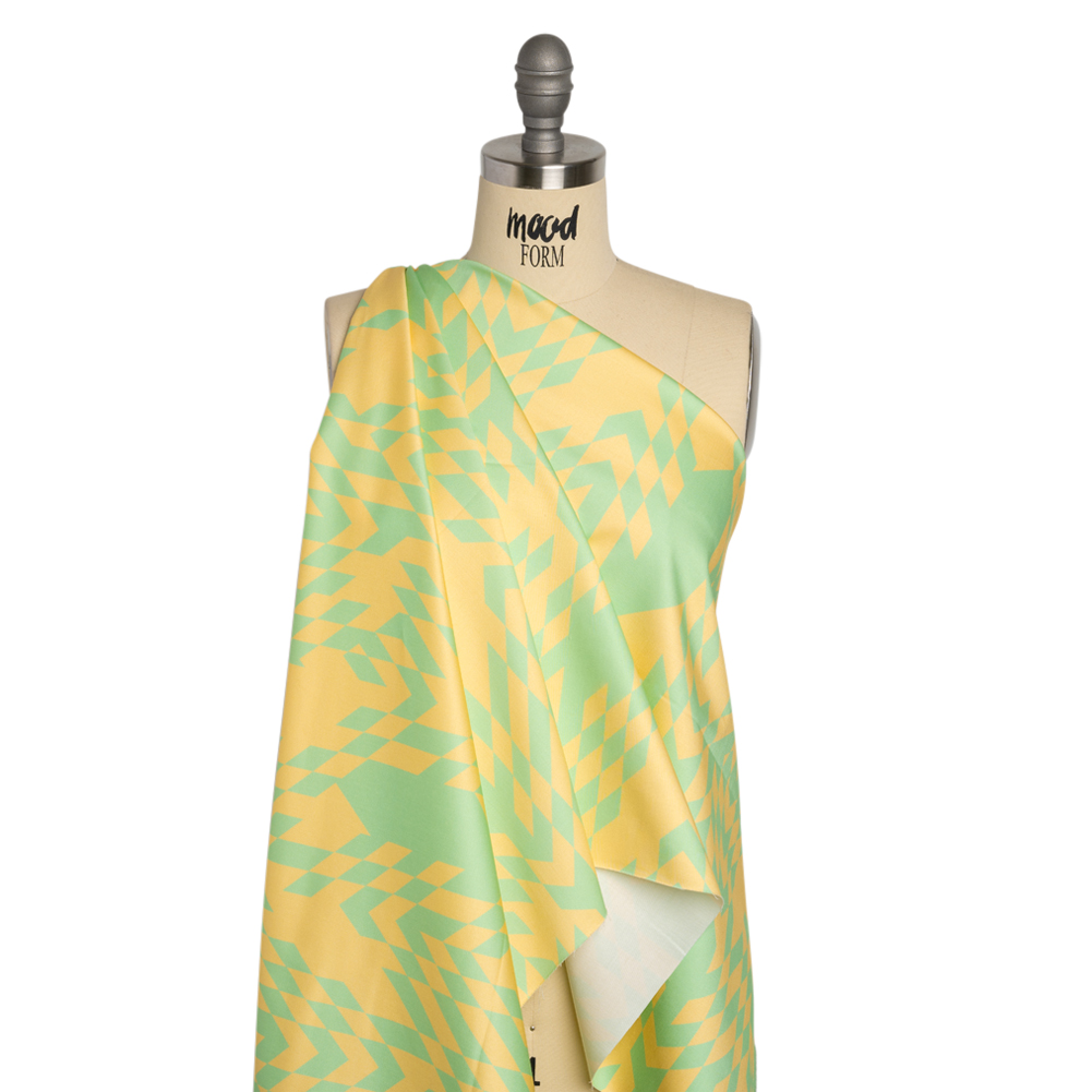 Often sour, frequently sweet, life looks a little like our Mood Exclusive Lemon Lime Life Stretch Cotton Sateen. Its geometric pattern reveals itself as checkers with a hint of houndstooth, colored in the sweet and sour palette of light yellow and green. Cotton sateen is the perfect balance between relaxed and refined as a dry, smooth hand meets a glossy finish. Lauded for its breathability, this sateen also features a 10% weft-wise stretch to enhance your comfort during your day-to-day. From trousers and wrap dresses to lightweight jackets and A-line tops, the malleable drape offers itself to casual wardrobes in all climates. Slightly translucent, a lining may be desired for added opacity.