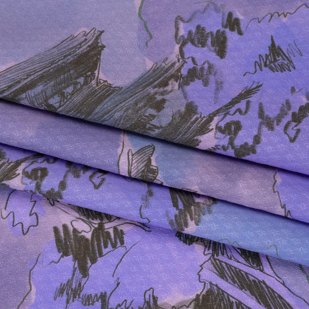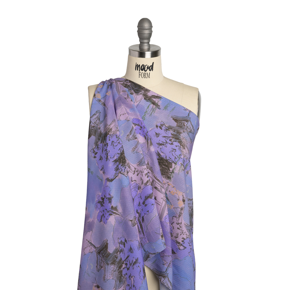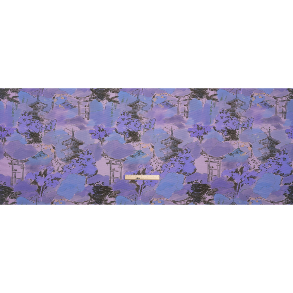 With a lush landscape printed over a woven pattern, this Mountain High Sustainable Viscose Diamond Jacquard presents a supple drape and soft luster perfect for upscale and everyday fashions.Suggested Projects: Dresses, Skirts, BlousesContent: 100% Viscose EcoVeroStretch: NoneOpacity: Mostly OpaqueDawn’s haze colors a Japanese mountainscape in shades of blue, lilac, and periwinkle, as elegant buildings rise between the trees. This Jacquard pairs a tiny woven pattern of diamond-like spots with a larger print, adding texture to a slight shimmering luster (courtesy of the rayon fibers). The medium weight and supple drape are ideal for sewing full-skirted dresses, flowing maxi skirts, and wrap blouses with puffed sleeves. As this fabric is mostly opaque, a lining is entirely optional.