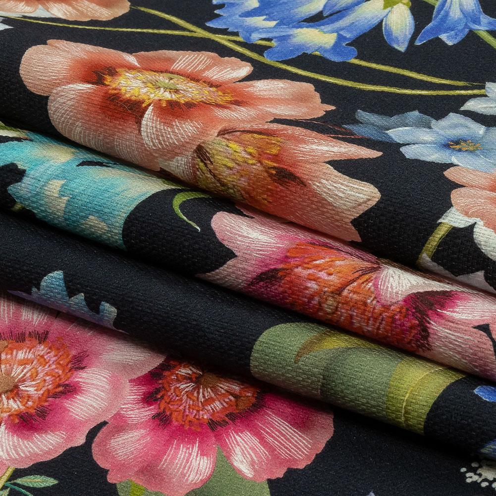 Mood Exclusive Navy Florist's Cuttings Stretch Cotton Woven