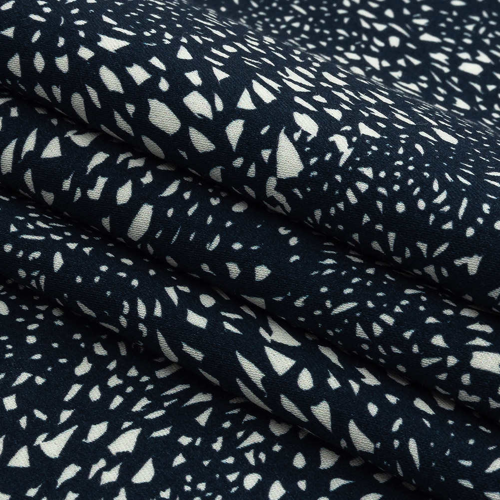 Our Mood Exclusive Navy Windswept Fields Stretch Cotton Sateen is an elegant abstraction of natural phenomena. Miniscule white dots, organic in shape yet with geometric qualities, swirl and collect on a navy blue ground, reminiscent of light catching on the ends of wheat or wild grasses as they blow in the wind. This versatile sateen offers incredible breathability and wrinkle resistance. Soft and smooth in hand, its medium weight composition offers a 10% stretch through the weft. With a slightly stiffer, malleable drape, compose tailored sheath dresses, voluminous dirndl skirts, and off-the-shoulder blouses. Swing by our Mood Sewciety Blog to take a glance at our free Lantana Maxi Shirt, Daylily Skirt, Cypress Dress, Nepeta Blazer, Nymania Pants, Dogwood Ensemble and Ulmus Dress sewing patterns for more inspiration. Mostly opaque, the addition of a lining will be a matter of personal preference.
