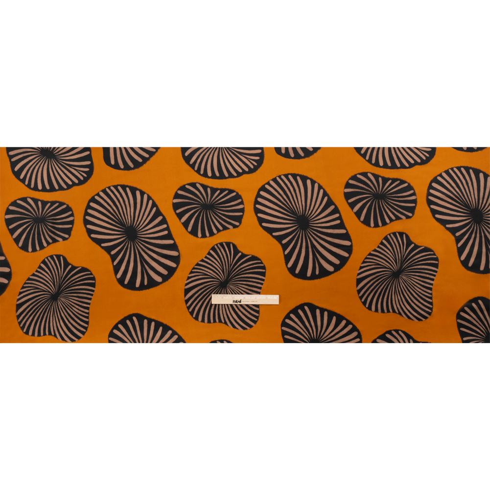 It’s late September and, under the autumn sun, our Mood Exclusive Orange Maggie’s Medallions Striped Viscose Dobby flashes its golden hues.