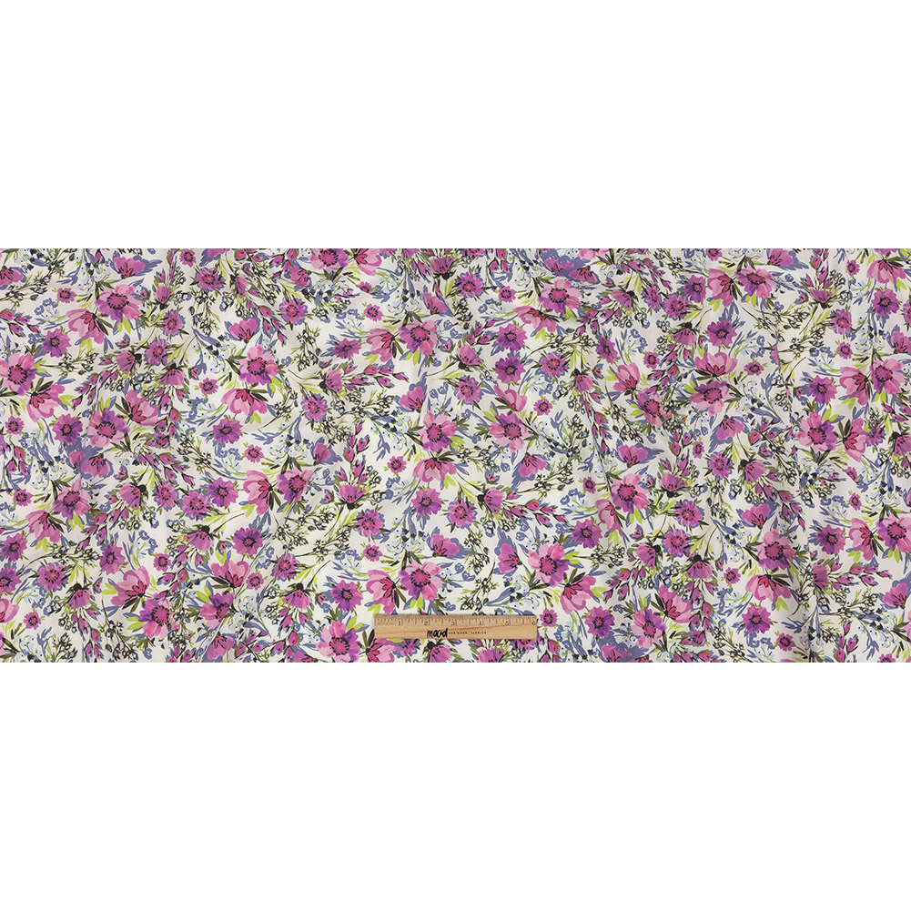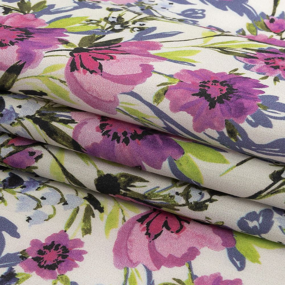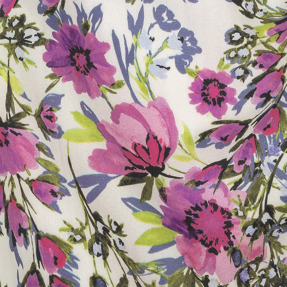 Gather ingredients for a love potion in a magical forest with our Mood Exclusive Orchid Whimsical Woods Cotton Poplin! Sweet purple-pink flowers bloom on green stems, with a smattering of gray-blue buds growing in between. Smooth and cool in hand, this poplin features a light, crisp drape and the slightest mechanical give in the weft. Craft this lightweight fabric into blouses and shirts for everyday or business wear, fashion fluttering dresses and summer skirts, or create casual shorts for the hottest days of summer. Darker colored areas are mostly opaque, while lighter colors may require a lining for some applications due to their translucency.MoodEarth Verified: BCI, or Better Cotton Initiative, focuses on the exchange of good practices, including economic, environmental, and social concerns, in the production of cotton. For more information on Mood's sustainability initiatives, check out MoodEarth here.