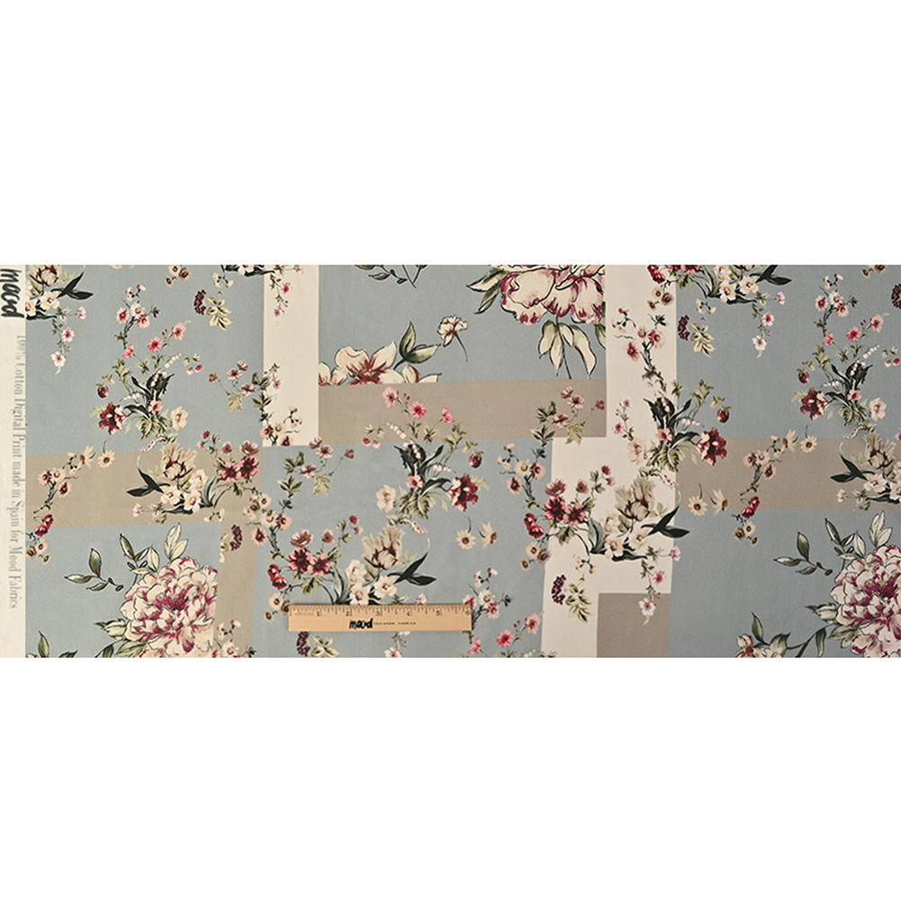 Two strikingly different art styles make a pact of peace and concord on the face of this Mood Exclusive Ornamental Divergence Sky Blue and Gray Cotton Lawn. Unbound and ethereal in spirit, the smaller, more detailed assortment of flowers transcend the soft blue and gray panels, free to dance all throughout the fabric. The larger, watercolored flowers are then left to ruminate within the confines of the borders like a dog stuck in its cage. Super soft and smooth in hand, its neutral colored background effortlessly catches the light to provide a delightful lustrous finish. Lightweight and without stretch, fashion flowing A-line skirts, airy pullover blouses, and sleek midi dresses with fluttering kimono sleeves that embellish its relaxed, flexible drape. Translucent, a lining may be desired in cases where increased opacity or structure are desired.