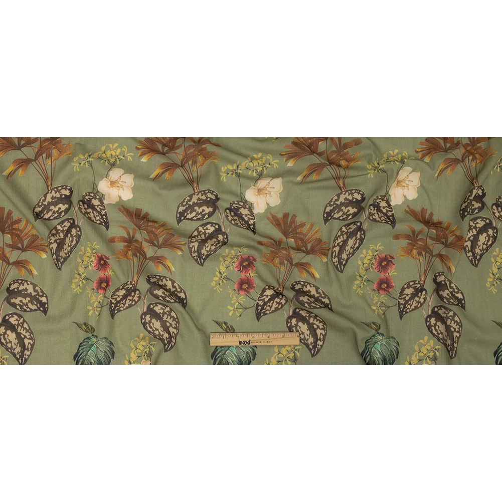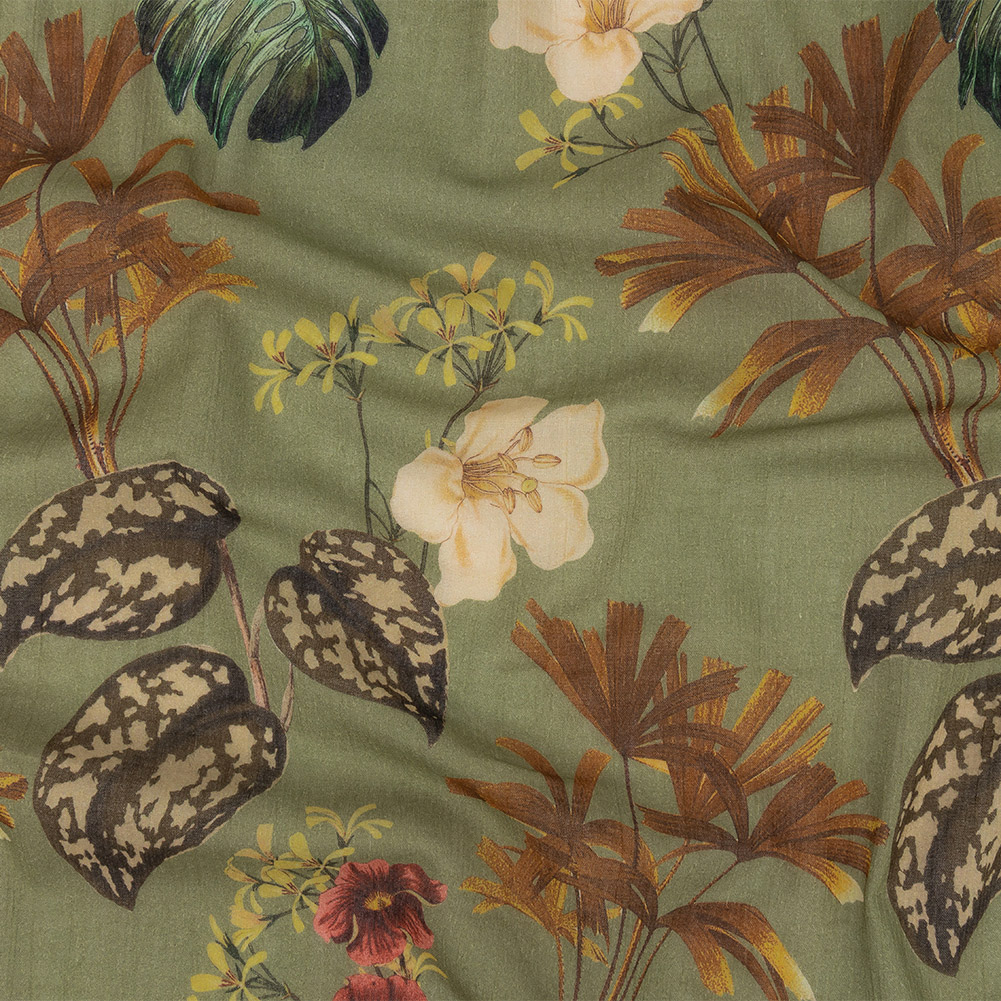 A scientist's sketchbook returns from a long expedition to warmer climes on our Mood Exclusive Pea Green Naturalist's Notebook Crinkled Cotton Voile. Lovingly rendered illustrations of tropical plants pass across the mossy green surface of this print. A delicately crinkled texture adds a paper-like quality to this voile with a cool, crisp hand. With a light, flexible drape, create billowing summer blouses and light sundresses, as the slight give across the weft makes for an easy fit. Quite translucent, a lining is recommended for both modesty and adding structure in some applications.
