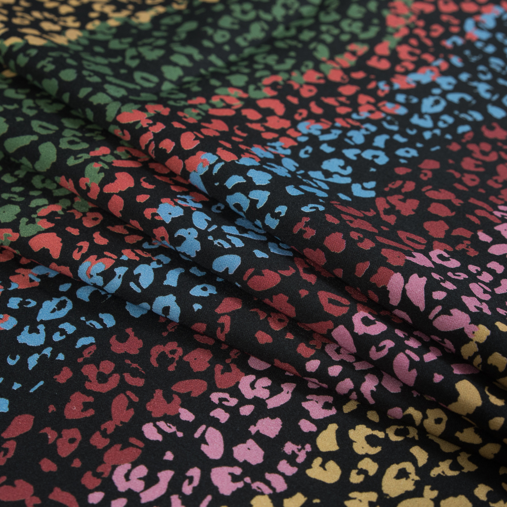 Shake up your cotton print game with this Mood Exclusive Pride Lands Rainbow Stretch Cotton Sateen. A daring leopard print in six colors streaks across the black backdrop on this effortlessly cool fabric. With a cool, soft hand and some stretch along the weft, it is a great choice for sheath dresses, pencil skirts, and more! Slightly translucent, a lining may be added for opacity or comfort.