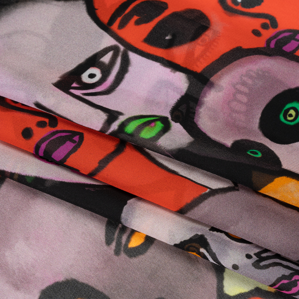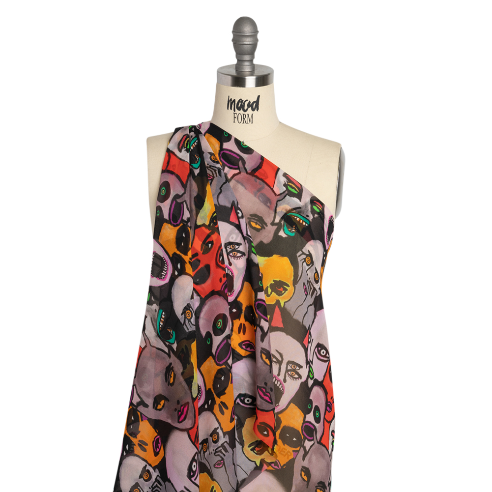 There are those who find fascination in fear—and under a ghoulish light, that’s all our Mood Exclusive Red Nefarious Fiends Viscose Chiffon can hope for.