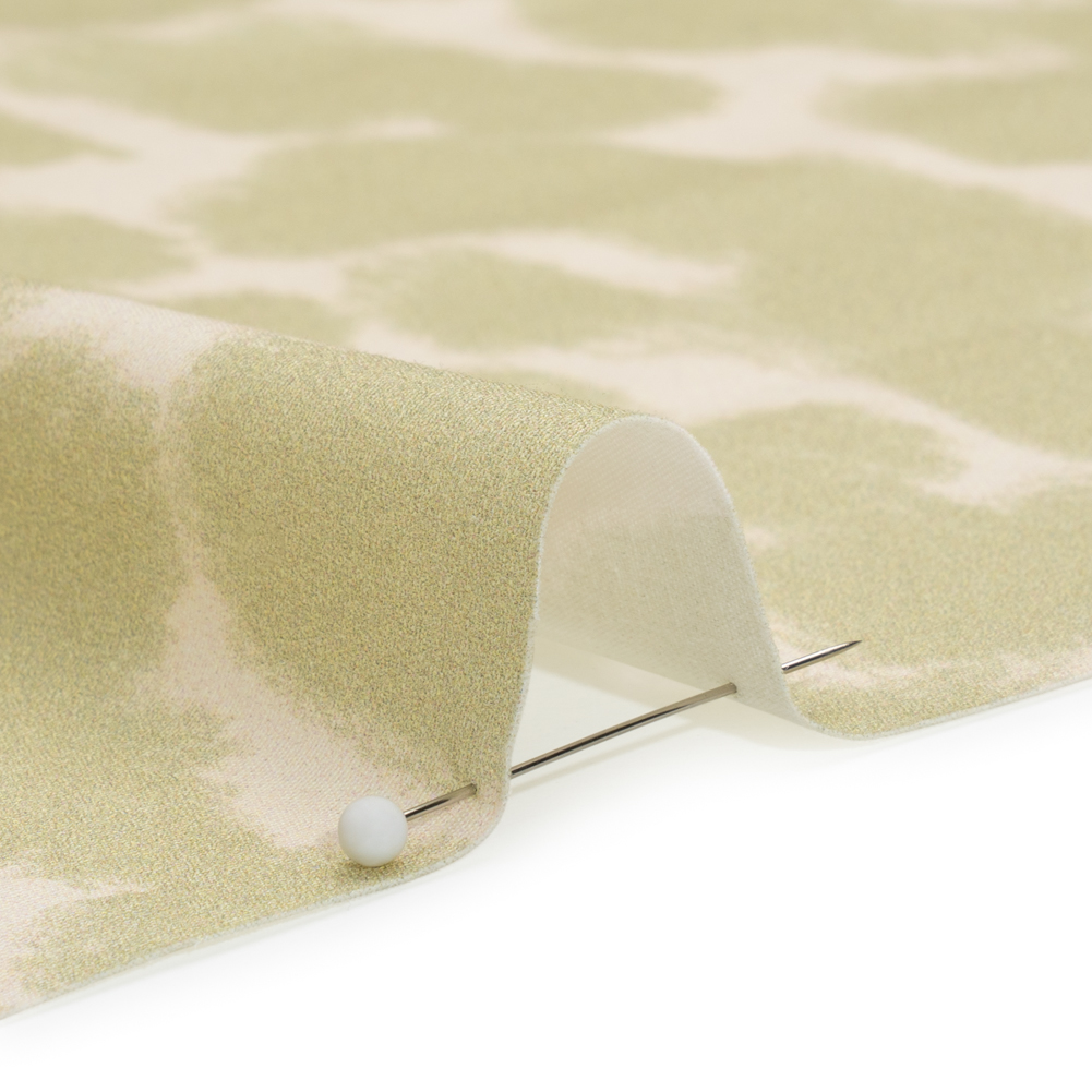 Dream of our Mood Exclusive Sage Head in the Clouds Stretch Cotton Poplin! A pastel oasis flashes an animal print flair as pale sage sploches appear like clouds on a cream background.