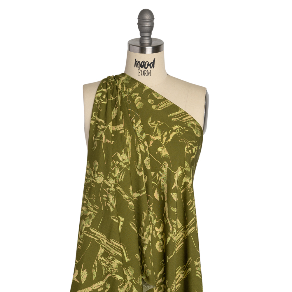 Displayed on our Mood Exclusive Santa Fe Freedom Viscose Twill, the lone ranger is anything but lonely; jiving to the feeling of freedom, they find their peace surrounded by cacti, stallions, rocks, and farmhouses. This 100% viscose fabric features a smooth face, lightweight drape, and cool hand, resting comfortably on your skin as it follows your daily movements with a graceful fluidity. Casual and semi-casual looks are instantly elevated by its crisp look, inspiring sewing projects like airy blouses, button-ups, palazzo pants, and more. Translucent, a lining may be desired.