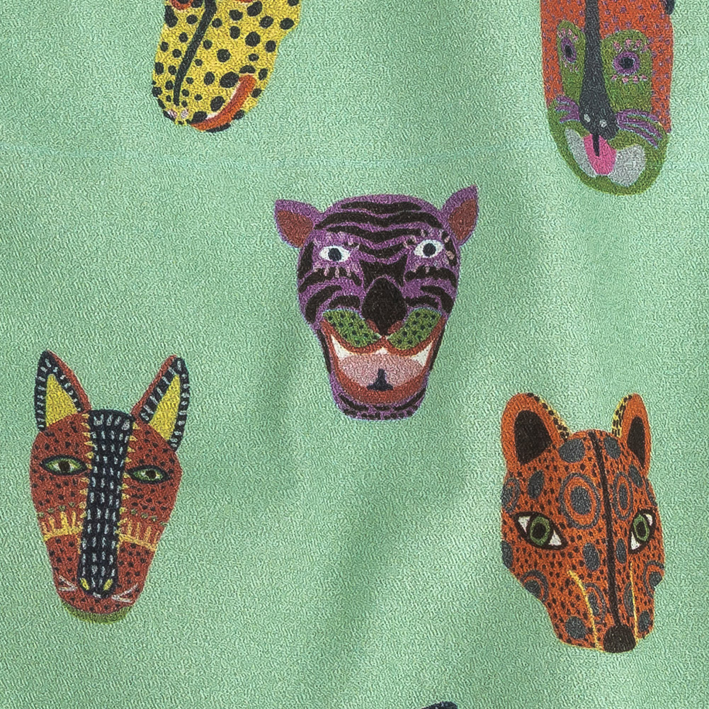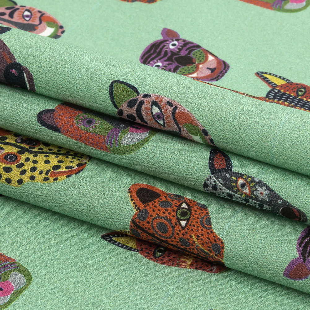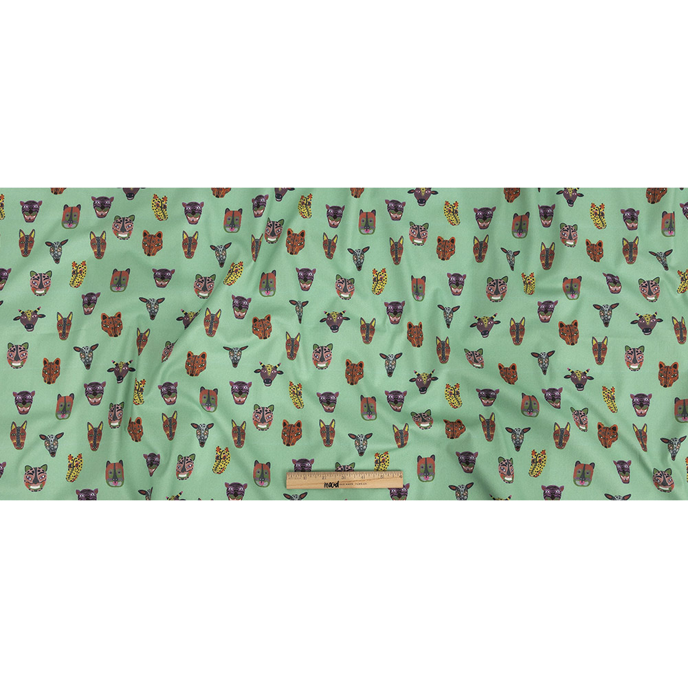 You won't want to hide while wearing our Mood Exclusive Seafoam Hide-and-Seek Stretch Brushed Cotton Twill! Stylized animal masks of giraffes, tigers, foxes, cheetahs, and more decorate this light seafoam green ground with a stunningly unique animal print. Crisp yet soft in hand, this twill features a notable stretch along the weft. With a malleable, slightly structured drape, craft the perfect pencil skirt with a colorful twist, design a variety of pants with an excellent fit, or create dresses, skirts, blazers, and vests to show off this fabulous print! A lining isn't necessary for opacity but may be desirable to increase comfort or to give your garments a professional look.