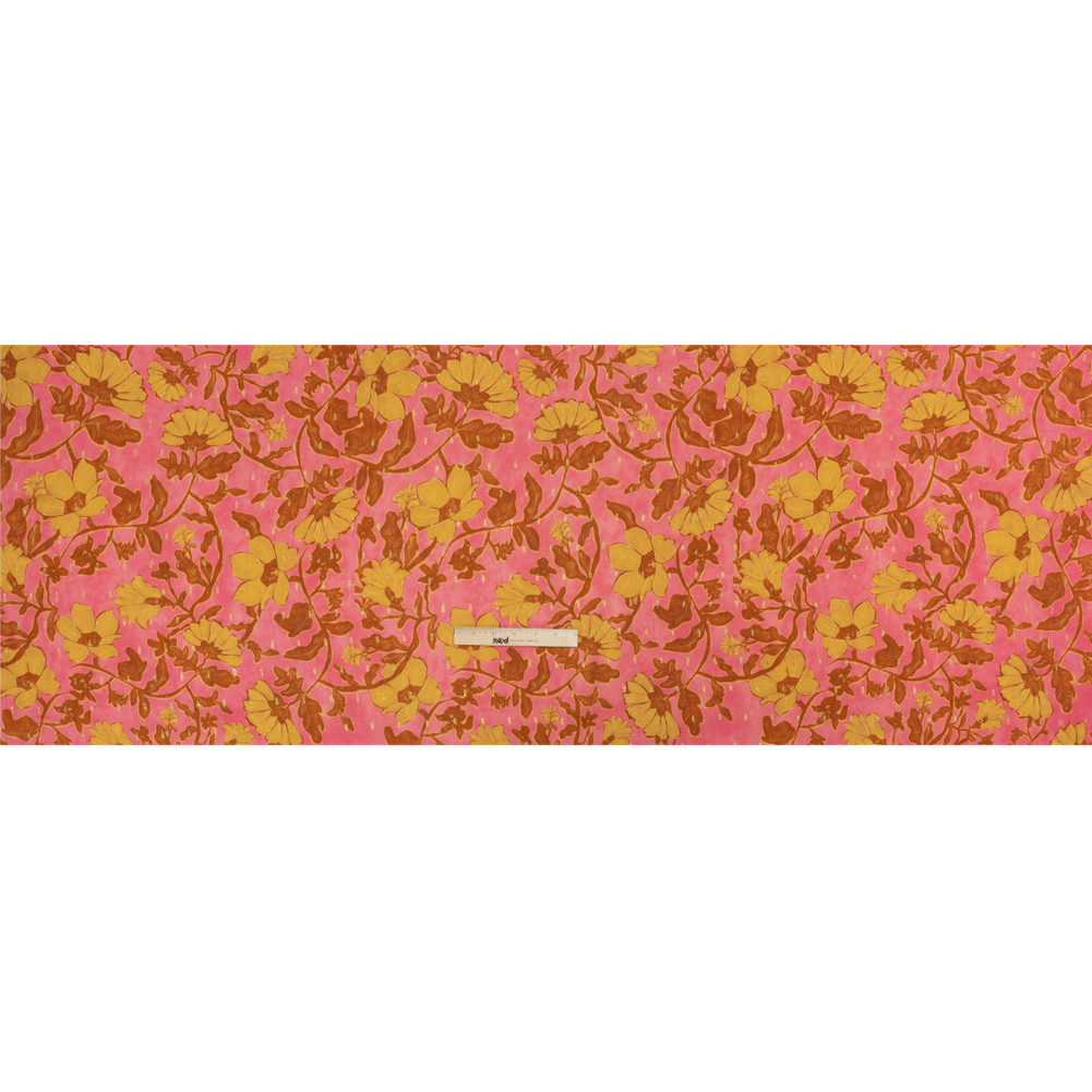 The setting sun paints the world in the sweetest hues, reflected by the candy-pink sky and lemon-drop leaves on our Mood Exclusive Sundown Sundae Metallic Dotted Crinkled Viscose Crepe. The crinkled face, decorated with rows of metallic gold dashes, displays the most distinguishable characteristics of a crepe: a grainy and crisp hand. A rippling drape compliments semi-casual silhouettes as its cool, medium-weight feel on the skin is perfect for all climates; create airy skirts, a-line sundresses, workday blouses, and more! As it is slightly transparent, a lining may be desired for complete opacity.Here are a few tips from our sewists to master crepe’s unique texture:Lower the thread tension on your sewing machine to prevent puckeringUse a new, fine point needleTo prevent slipping during cutting, line up your pieces with the pattern pieces, cut in single layers, and use a rotary cutter or tabletop scissors.Be patient and have fun!