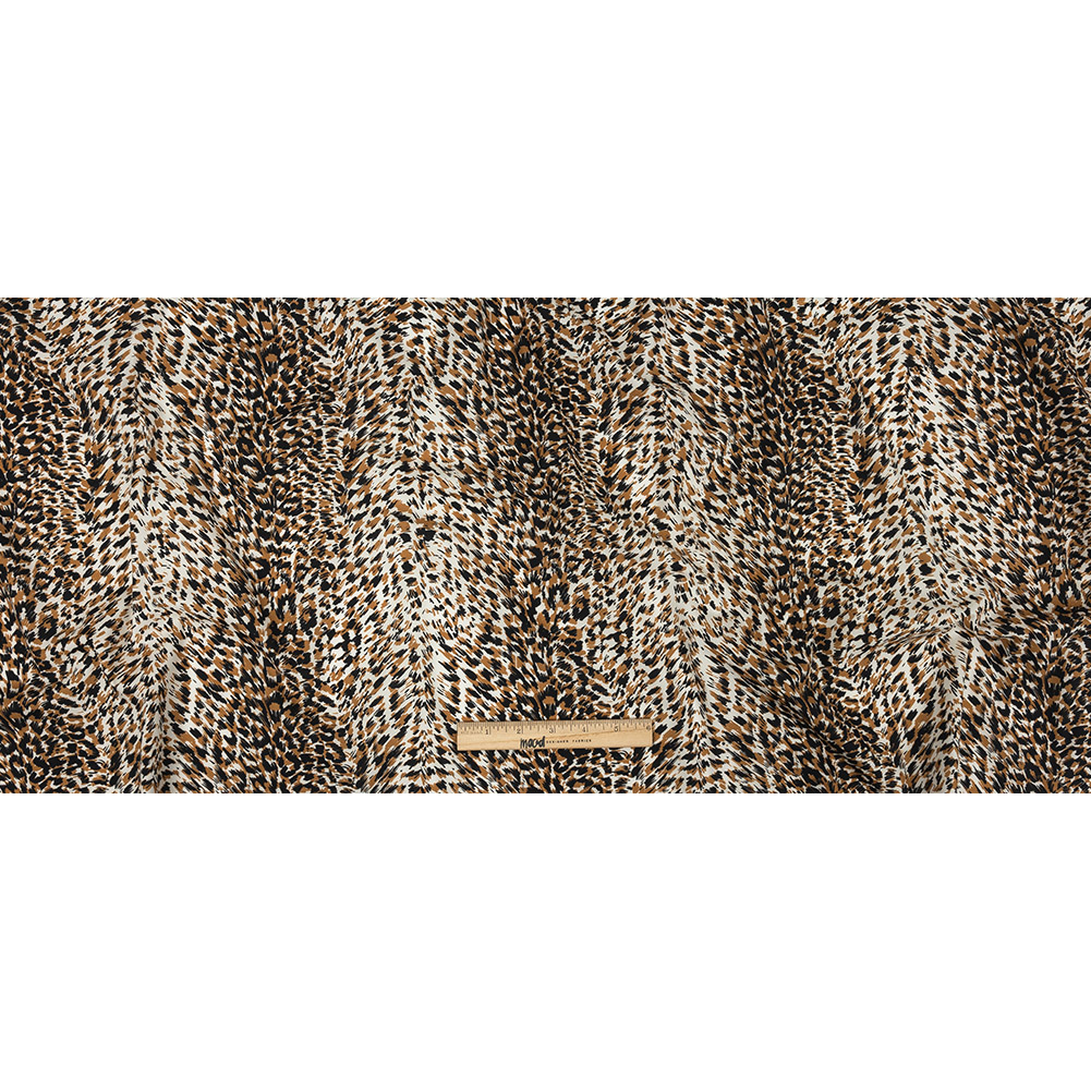 Our Mood Exclusive Tan Fanciful Furs Cotton Poplin is absolutely fur real! Tan and black lines overlap to create this spotted fur-texture print. Crisp and cool in hand, this poplin features a fluttering drape. With no stretch, be sure to add ease while you create expertly tailored shirts and blouses, easy shirt dresses, and lightweight skirts. A lining is recommended for a polished finish and opacity with this slightly translucent material.