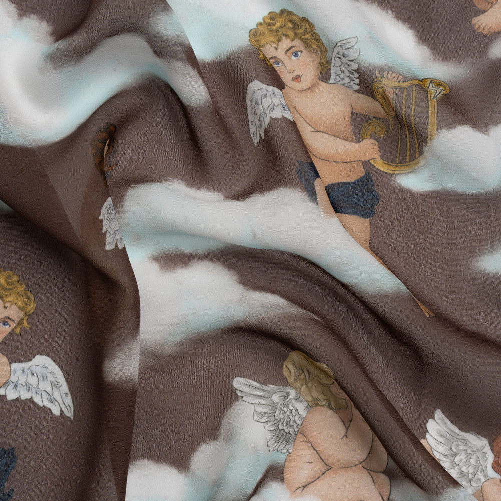 With the Milky Way their playground and the atmosphere their stage, the bright-eyed cherubs on our Mood Exclusive Taupe Drowsy Dreamers Viscose Chiffon keep busy among the clouds.