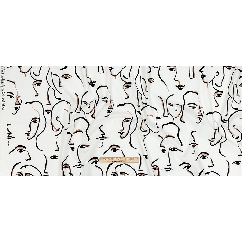A surreal scene is composed of lines, thick and thin, realizing outlines of the human face, perhaps a friend? Our Mood Exclusive White Abstract Concepts Cotton Poplin explores conceptual, abstract thinking and the role it plays in our daily lives, this iteration in lovely shades of white, dark gray, and beige. A smooth, crisp hand and a flexible drape join forces in perfect harmony, creating this lightweight cotton poplin with a slight mechanical give. Despite its slightly translucent nature, a lining is not required, and this fabric is ideal for the warmer months. Consider using this poplin to craft structured summer dresses as well as breathable paneled shirts – whichever you choose, this pattern is sure to make any summertime outfit pop!