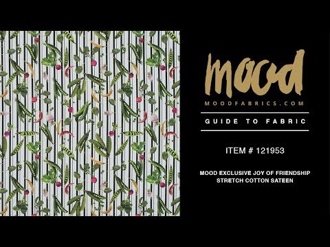 You and a friend will look like two peas in a pod when you make matching garments from this Mood Exclusive Joy of Friendship Stretch Cotton Sateen. Its name, Joy of Friendship, comes from the predominant pea pods representing joy and happiness throughout the design and the vibrant chili peppers accenting along the way representing warmth and friendship. A light, somewhat crisp hand coalescing with an easy yet structured drape to create a wondrous material great for use in fitted pencil skirts, sheath dresses or even tailored pants! Opaque in nature, a lining isn't necessary but may be used in instances where additional structure is desired.