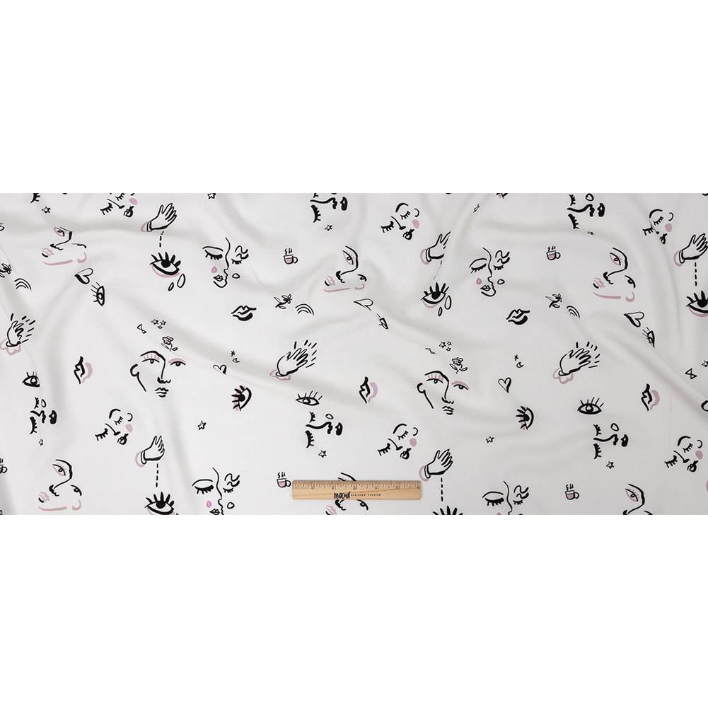A simple shape can show emotion just as clearly as something fully rendered, and our Mood Exclusive White Pictogram Pleasure Drapey Viscose Woven is here to prove it.