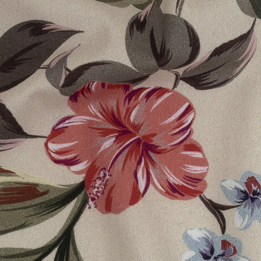 Brushstrokes sweep across the gorgeous grayish-beige ground of this Mood Exclusive Whitecap Gray Painted Paradise Stretch Cotton Twill to produce an elegant floral masterpiece.