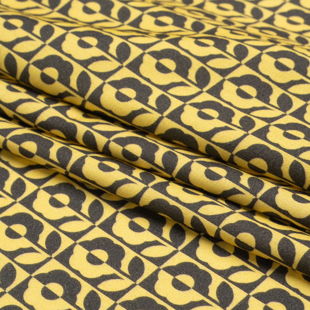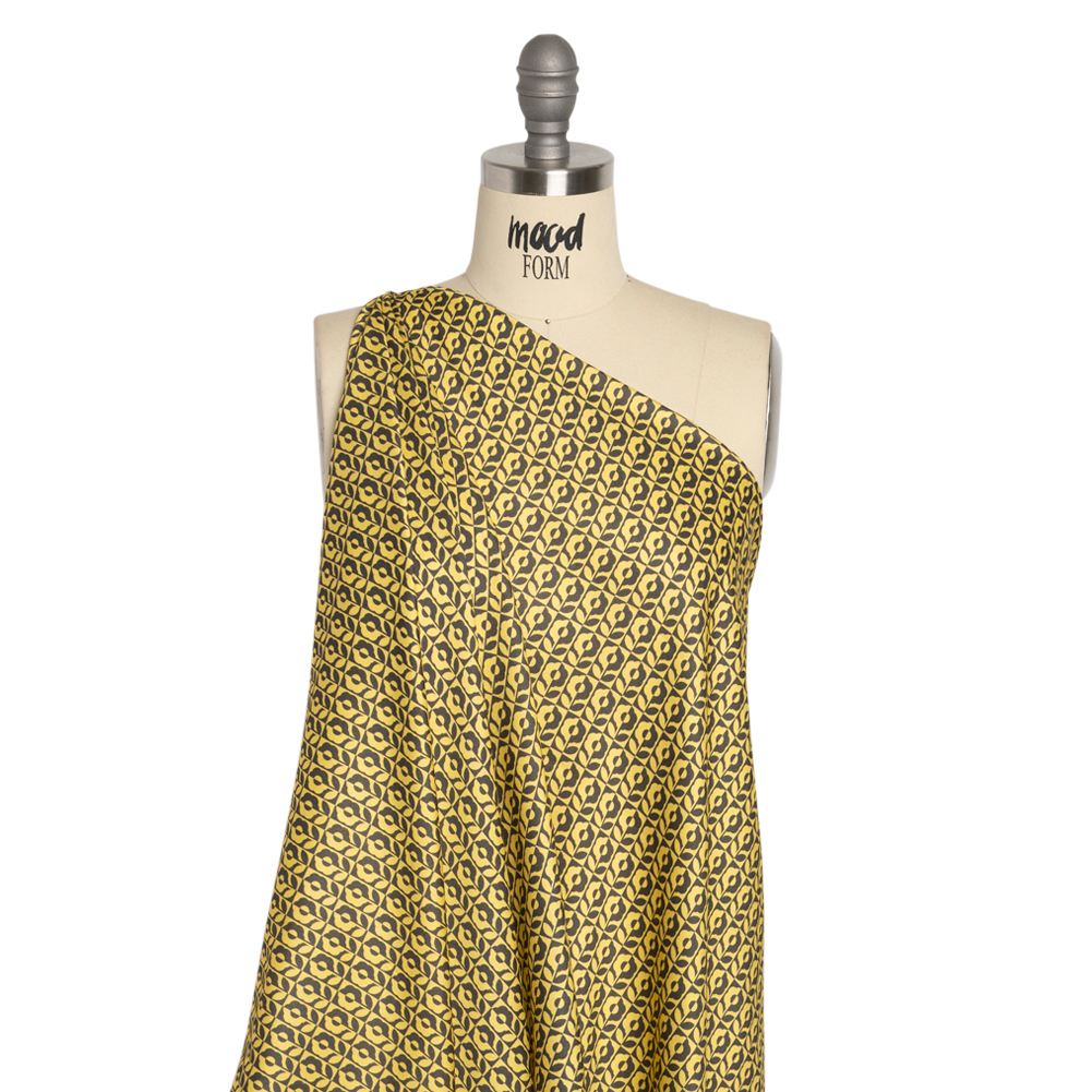 Displaying a garden of buttercups both during the day and at night, this Mood Exclusive Yellow Build Me Up Rayon Challis will provide a fun foundation to build warm-weather outfits. Rows of yellow and black color-blocked buttercups cover the surface like tiles, creating a stark contrast across the fabric. The face boasts a modest shine to accompany the smooth hand, providing an overall look of understated elegance. Enjoy the warmth of the day in style with the lightweight drape—beautiful as a sundress, skirt, blouse, and more. A lining may be desired due to its semi-sheer nature!