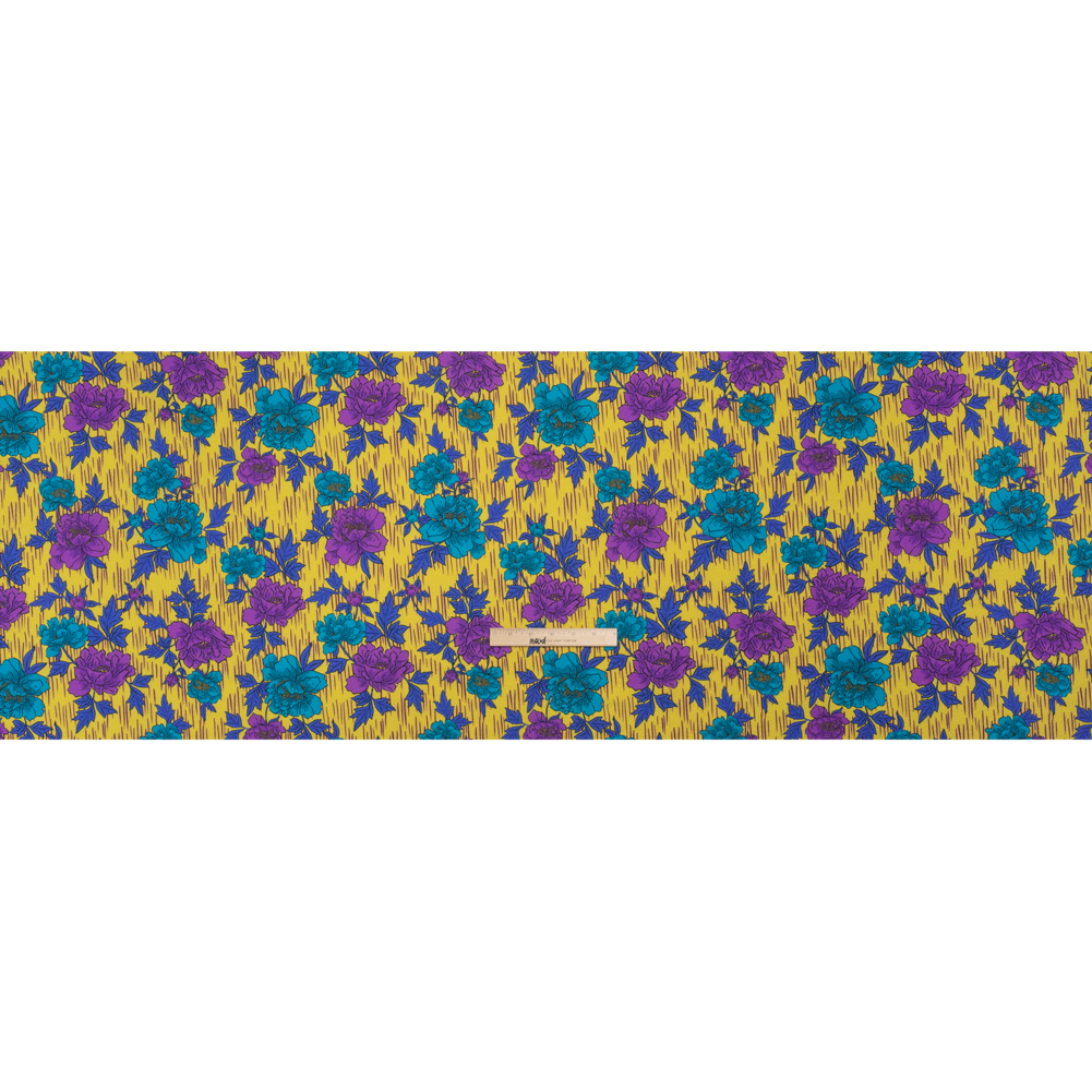 In between the raindrops, our Mood Exclusive Yellow Through the Rain Stretch Polyester Seersucker puts on a show. A storm of purple streaks slides down a bright yellow background as teal, purple, and navy roses lap up the rain. Apart from bringing a unique texture to your everyday and semi-formal garments, seersuckers offer a respite from the heat as their lightweight, puckered face keeps you cool in any climate. Separating this specific seersucker from the rest is its 10% weftwise stretch, a bonus element that boosts its comfort from ahh to ahhhhhh. With its supple drape, you can create suit jackets, blouses, pinafore dresses, collared shirts, and more! Depending on the project, a lining may be desired.