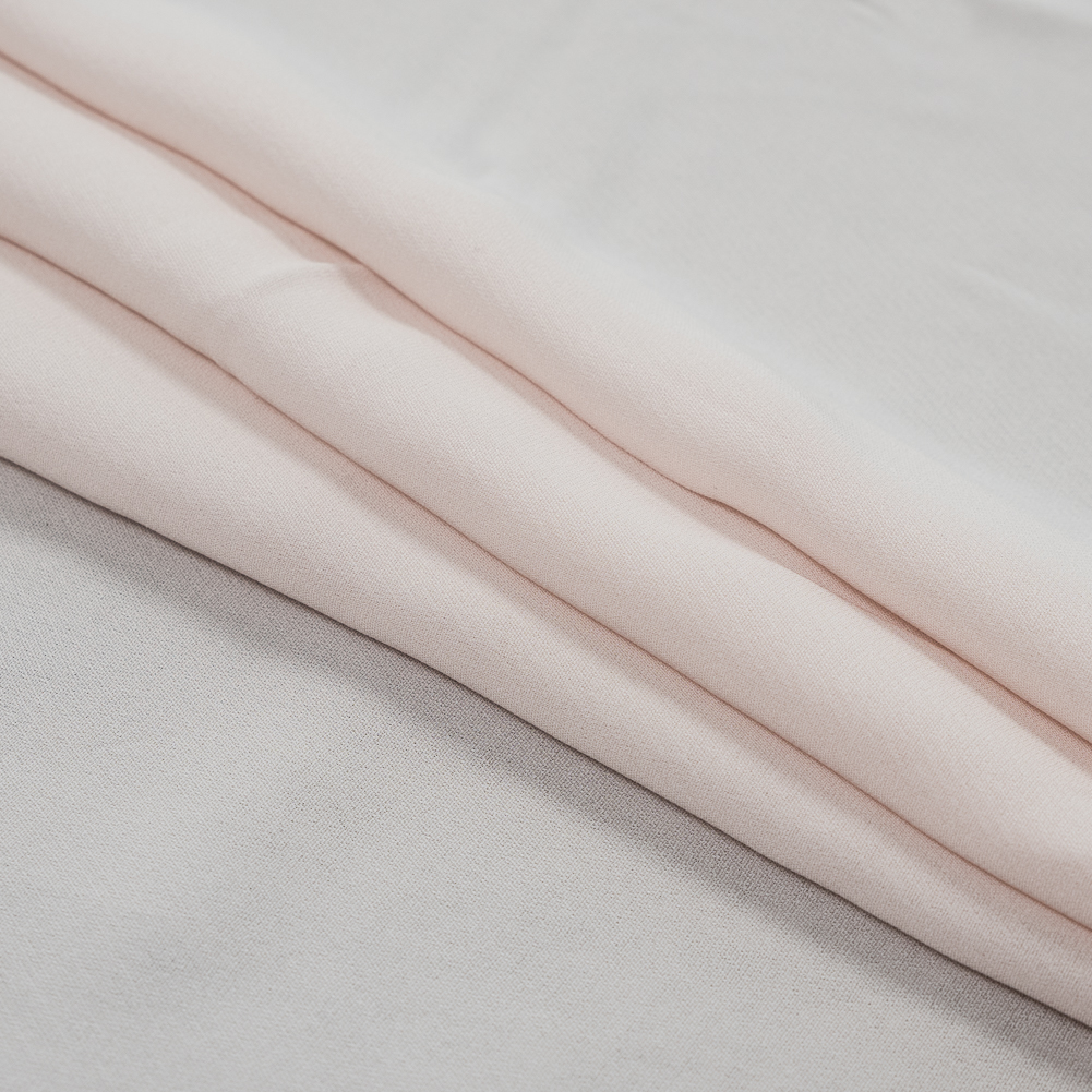 Add a new neutral to the mix with this Morganite Rayon and Polyester Crepe. Whether you are looking for a sweet pastel or a basic that is anything but white, this crisp pale pink crepe is here for you. Use its fluid drape to create blouses, ruffled sheath dresses, tunics and more! Light and breezy, the thin woven is sure to add a lovely dose of style to any look. Thin and translucent, insert a lining for more opacity.