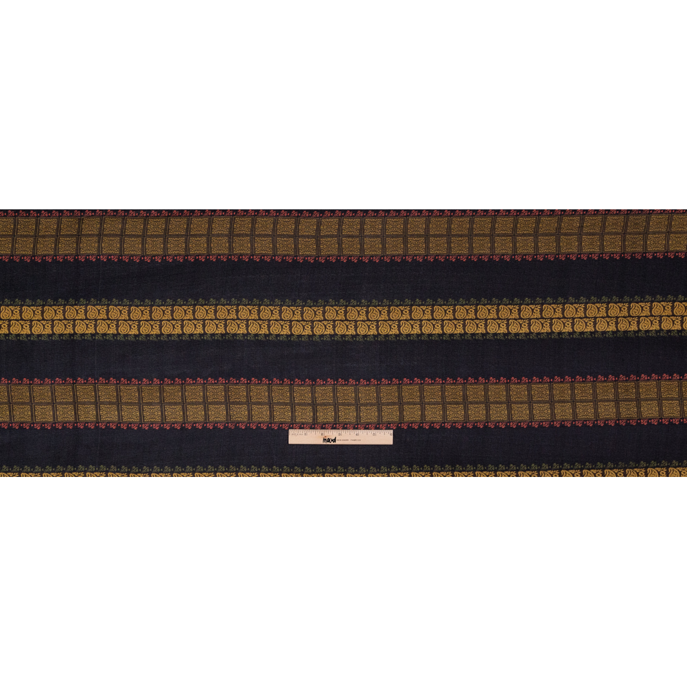 Mustard and Black Paisley and Square Striped Silk Chiffon