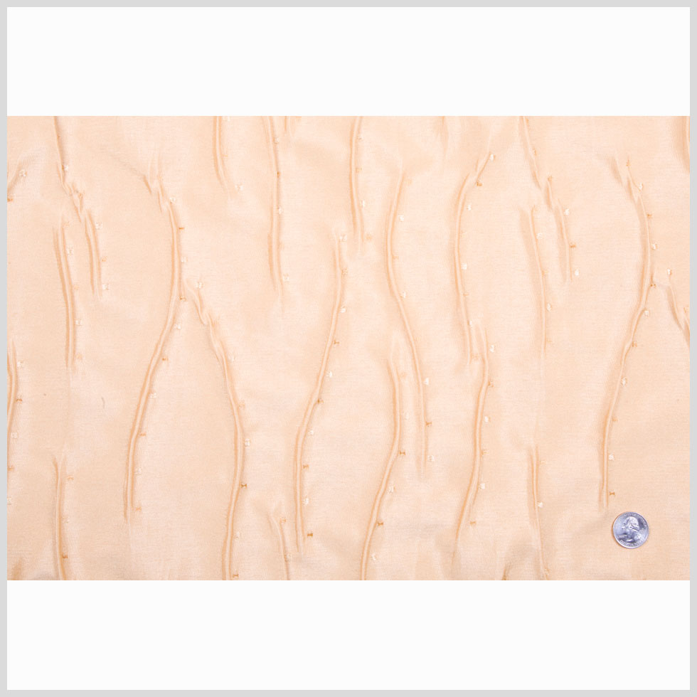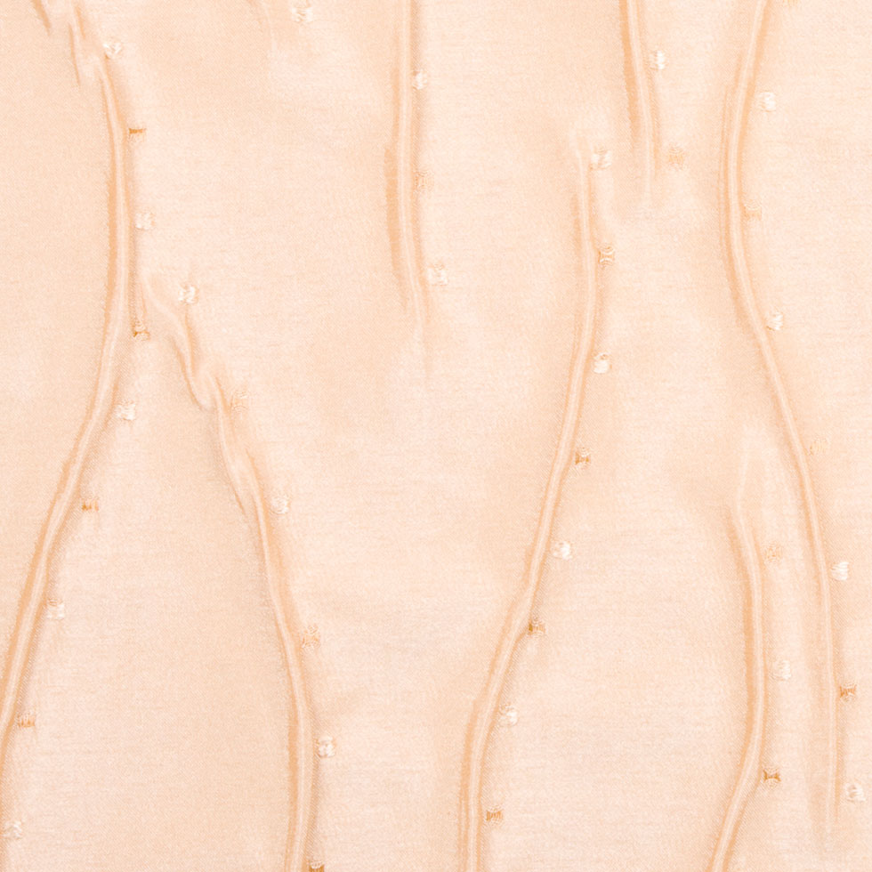 This is a mustard colored polyester with petite woven squares. The squares form short segmented waves as well as a slight fabric pucker above them. Light weight, great for drapery.
