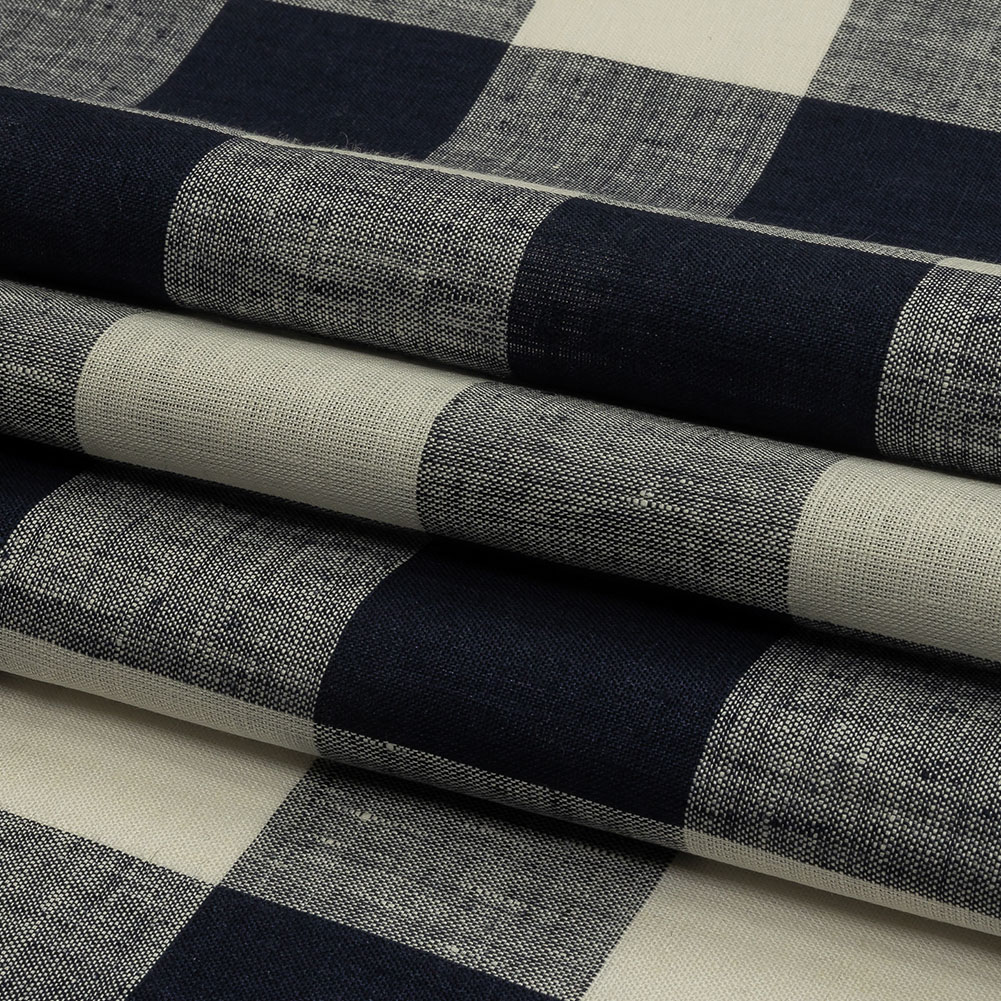 Navy and Icicle Buffalo Check Lightweight Linen Woven