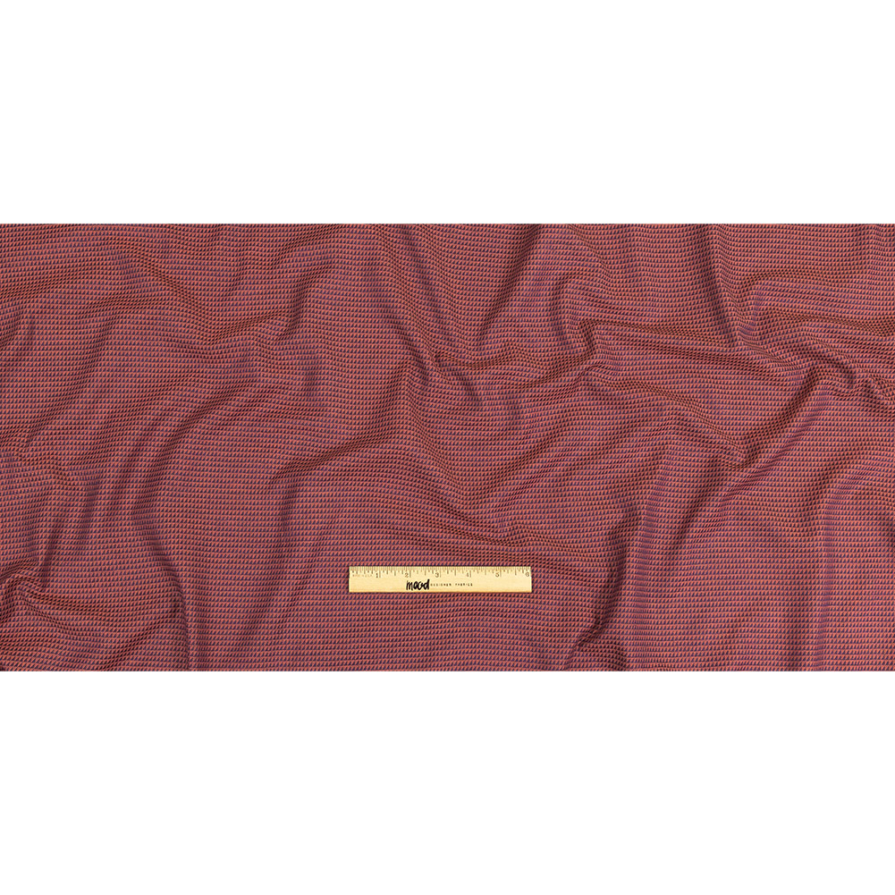 With a dynamic color combo, you'll fall in love with this Navy and Orange Triangles Cotton and Polyester Twill! On a semi-lustrous face, peach and navy blue triangles alternate to create a tiny, yet appealing design. Soft and somewhat fluid in hand, try button-down shirts perfect for the workday, or blouses and shirtdresses to transition into night. Nearly opaque, a lining is not necessary for most applications.