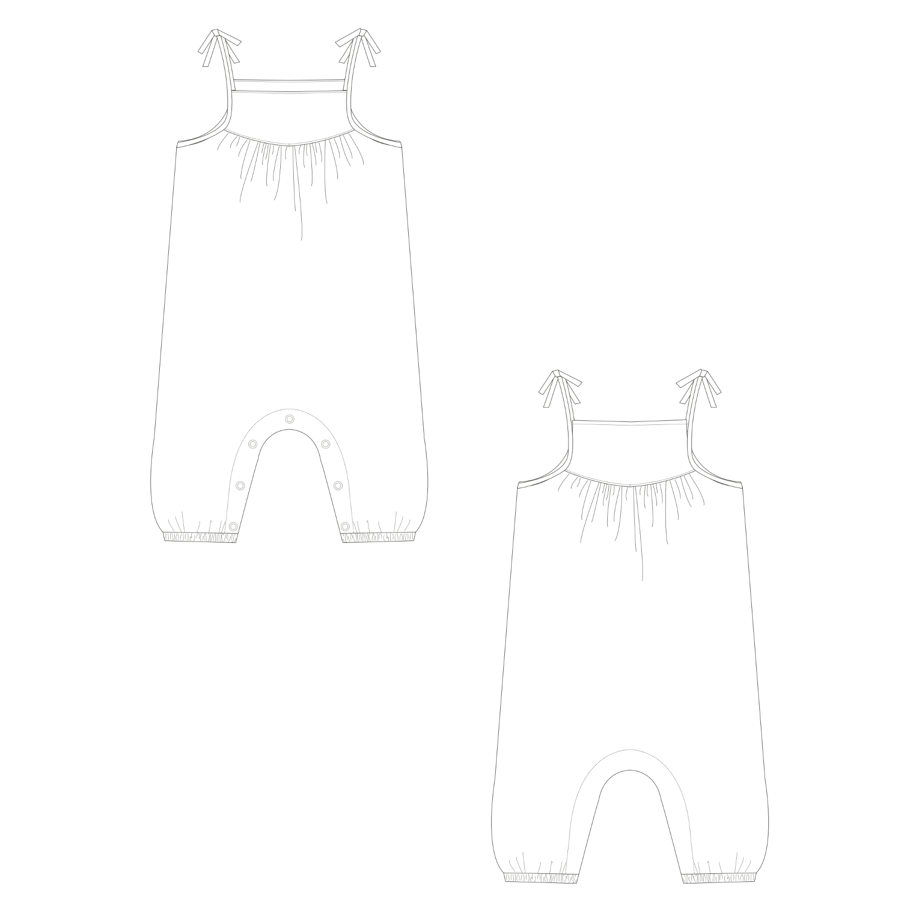 ✨ Sew an adorable and comfy outfit with the "Nele" jumpsuit pattern! This PDF pattern includes two variations: a long jumpsuit with a snap crotch for easy diaper changes and a short summer romper – both perfect for baby girls and toddlers.