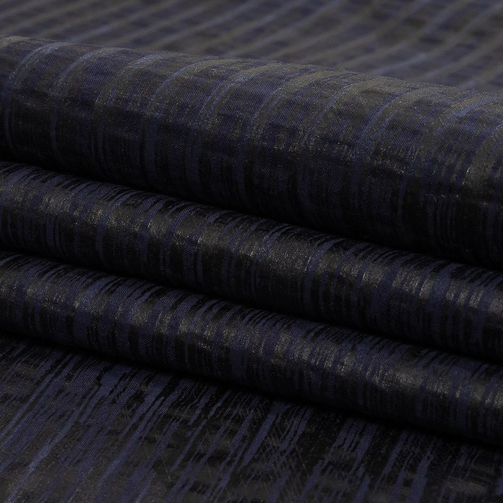 Night Sky Striped Cotton and Polyester Dobby with Gunmetal Striated Foil Topcoat