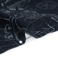 Polyester Stretch Mesh - Green, Berry Red and Butterceam Painted Palm Leaves - Designer Deadstock
