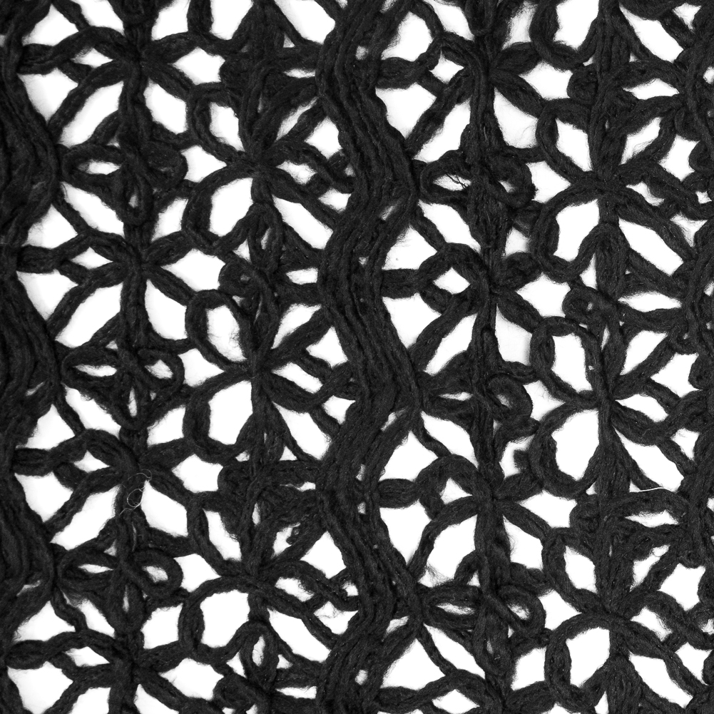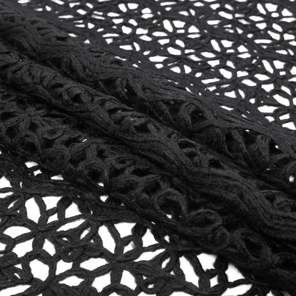 Try something new! Add this Black Novelty Acrylic Lace to your collection. Soft and fuzzy yarns loop and wave to create this avant-garde lace. Stylistically couture, we see it as an overlay for dresses, sweaters and tops. It flows and falls into relaxed designs and silhouettes. Thick in hand, add a delightful texture to your look.