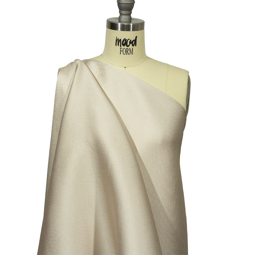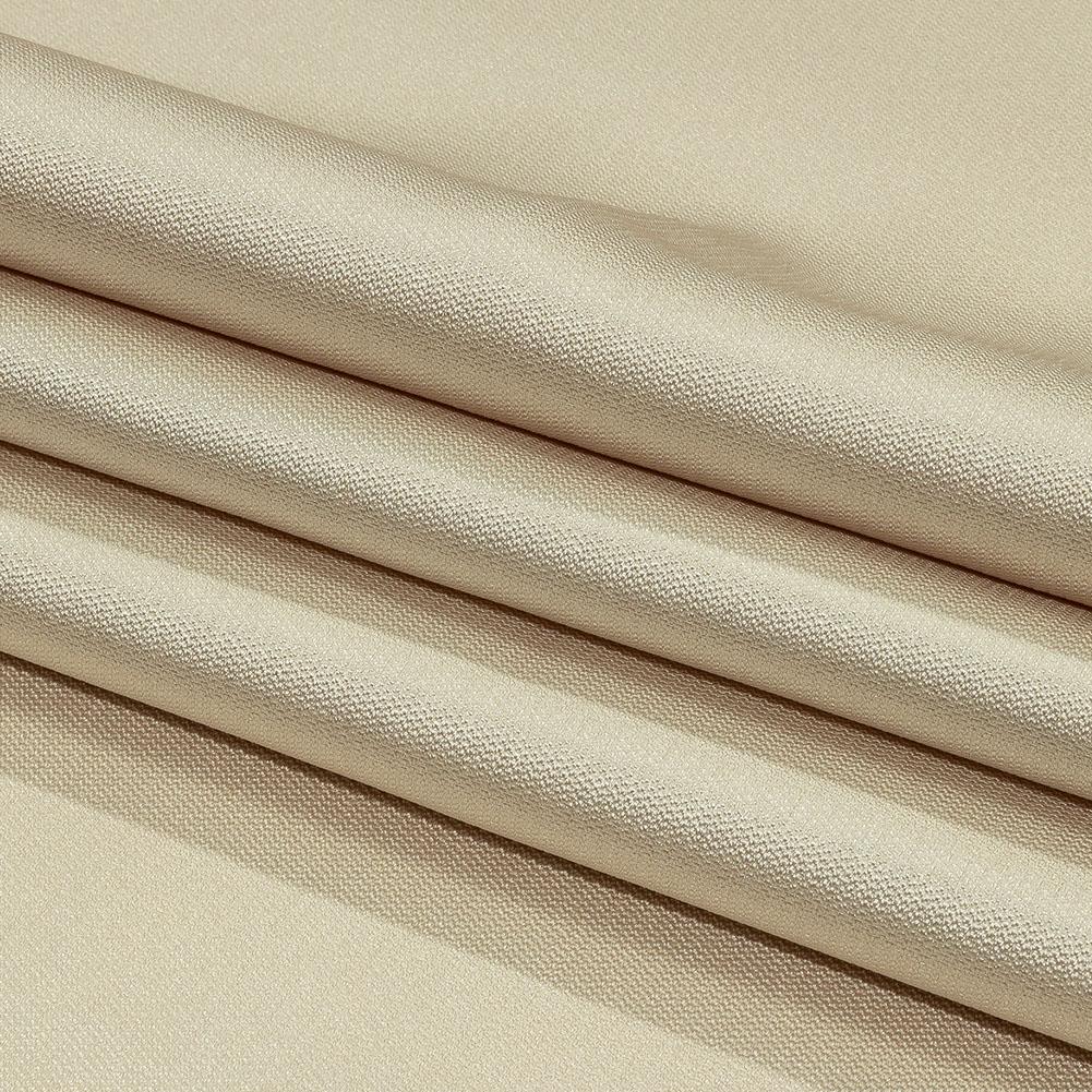Give neutrals a tactile upgrade with this Kestrel Oatmeal Novelty Polyester Pique! The pique construction adds tiny, textural diamonds across the luminous beige face. Cool to the touch with a fluid, malleable drape and mechanical give, we imagine upscale polo shirts, preppy shirtdresses, evening gowns, or even relaxed blazers. Somewhat translucent, a lining may be desired for additional opacity and structure, but is not always necessary.