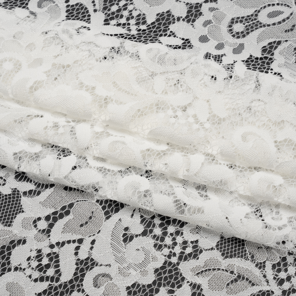 Nylon and Rayon Raschel Lace Panel with Finished Edges - Ivory Florals and Curls