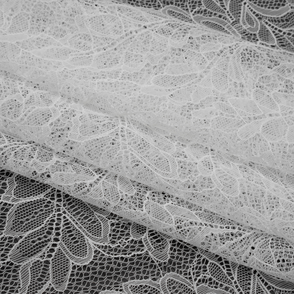 Nature and high couture meet in a union of elegance atop this Ivory Leafy Stems Nylon Re-Embroidered Lace with Finished Edges—features an airy drape and soft, tactile hand.Suggested Projects: Bridal Wear, Gowns, Dresses, Blouses, LingerieContent: 100% NylonStretch: NoneOpacity: SheerA nature-inspired design unfurls gracefully across this ivory lace, where delicate leaves and stems bloom in a soft, romantic rhythm. Finished with a fringed edge for effortless project completion, this lightweight lace offers a soft, tactile hand and an elegant, airy drape—ideal for ethereal wedding gowns, romantic lingerie, sheer blouses, and more. Entirely sheer, it invites thoughtful layering or a lining, depending on your desired level of coverage.