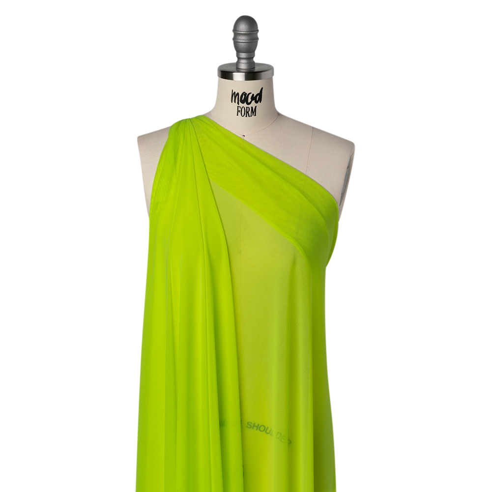 Make sure you’re always in the spotlight with this Hi Vis Yellow Nylon Stretch Mesh—featuring a soft, smooth hand and malleable drape.Suggested Projects: Undergarments, Activewear, Tops, DressesContent: 95% Nylon, 5% SpandexStretch: 50% Weftwise, 60% WarpwiseOpacity: SheerComfort becomes this hi-vis yellow stretch mesh—and it’s sure to become you! With a silky smooth hand and fluid, flexible drape, this nylon mesh is as dynamic as it is versatile. Its moderate all-way stretch allows it to sculpt the body with ease—ideal for sleek bodysuits, embroidered long sleeves, and edgy statement tanks and tees. Thanks to its nylon-spandex blend, it’s also well-suited for figure-smoothing undergarments like control-top pantyhose, shaping slips, and long-line lingerie. Incredibly sheer—true to mesh form—we suggest layering or lining for added coverage where desired.