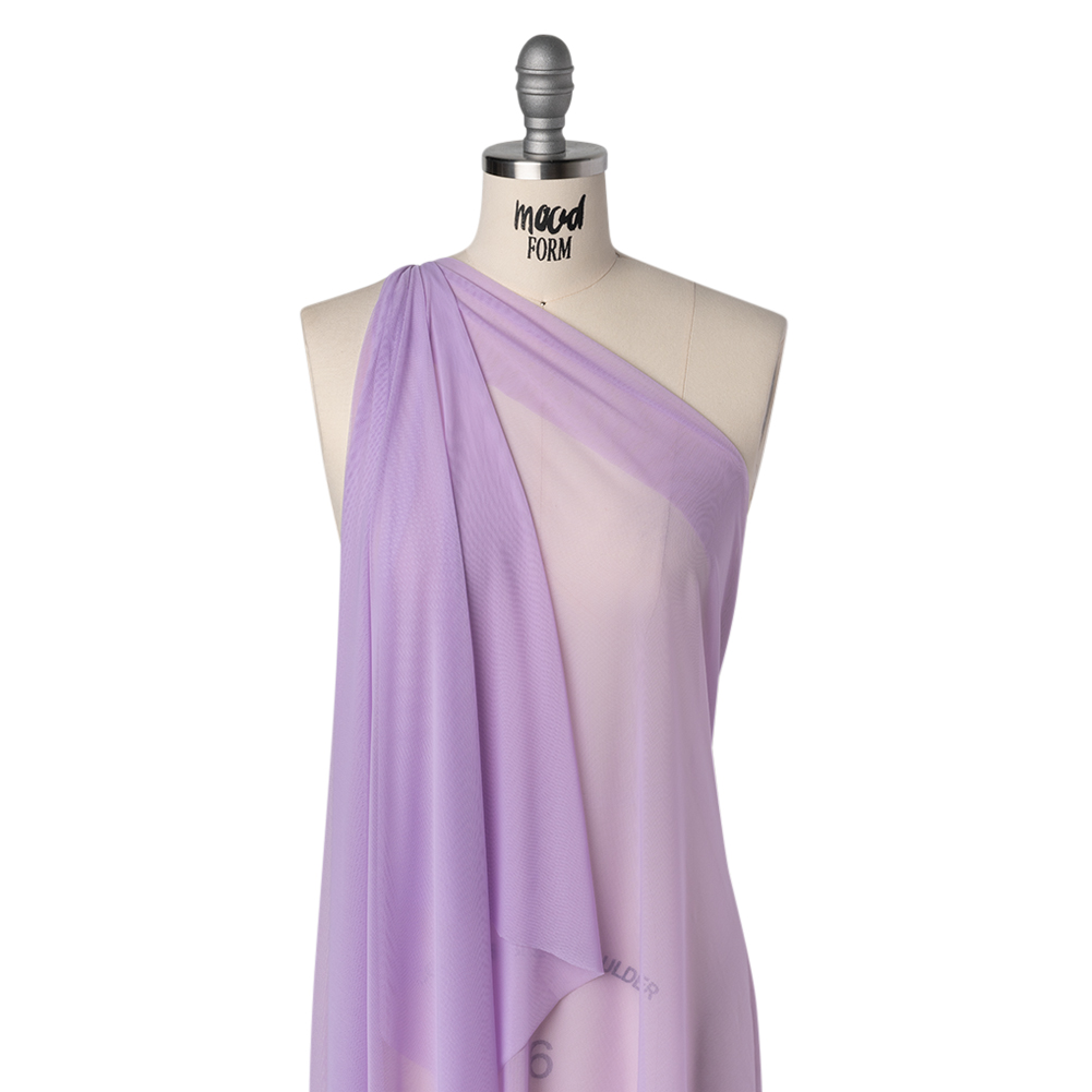 Roam flower fields while remaining cool thanks to the breezy comfort of this Lavender Nylon Stretch Mesh—featuring a soft, smooth hand and malleable drape.Suggested Projects: Undergarments, Activewear, Tops, DressesContent: 95% Nylon, 5% SpandexStretch: 50% Weftwise, 60% WarpwiseOpacity: SheerComfort becomes this lavender stretch mesh—and it’s sure to become you! With a silky smooth hand and fluid, flexible drape, this nylon mesh is as dynamic as it is versatile. Its moderate all-way stretch allows it to sculpt the body with ease—ideal for sleek bodysuits, embroidered long sleeves, and edgy statement tanks and tees. Thanks to its nylon-spandex blend, it’s also well-suited for figure-smoothing undergarments like control-top pantyhose, shaping slips, and long-line lingerie. Incredibly sheer—true to mesh form—we suggest layering or lining for added coverage where desired.