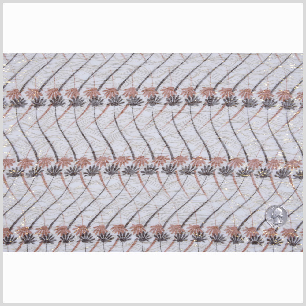 Oatmeal, Chestnut and Orange Floral Gauzy Silk Chiffon encasing Gold Metallic Yarns