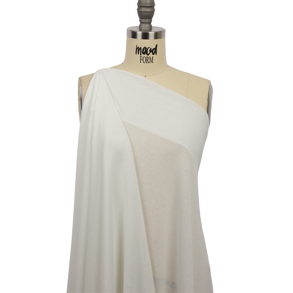 Like the spring breeze, this Off White Polyester Sweater Knit is bright and airy.