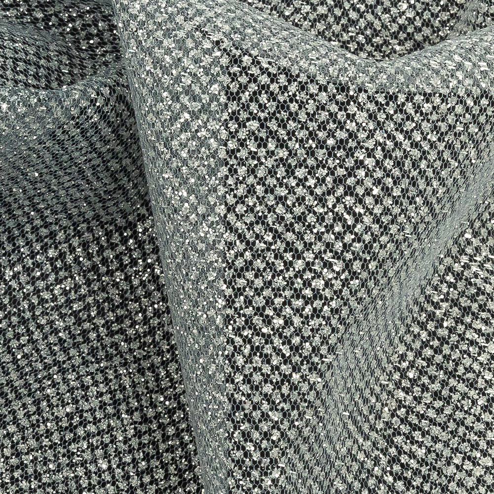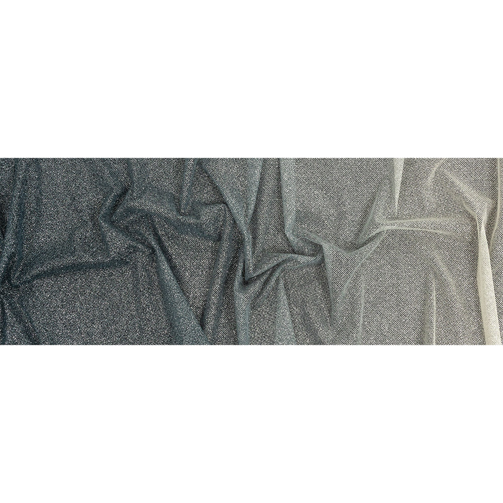 The classic combo of blue and white goes glittery with this Navy and White Ombre Tulle with Metallic Platinum Glitter! Featuring a coarse hand and crisp drape.
