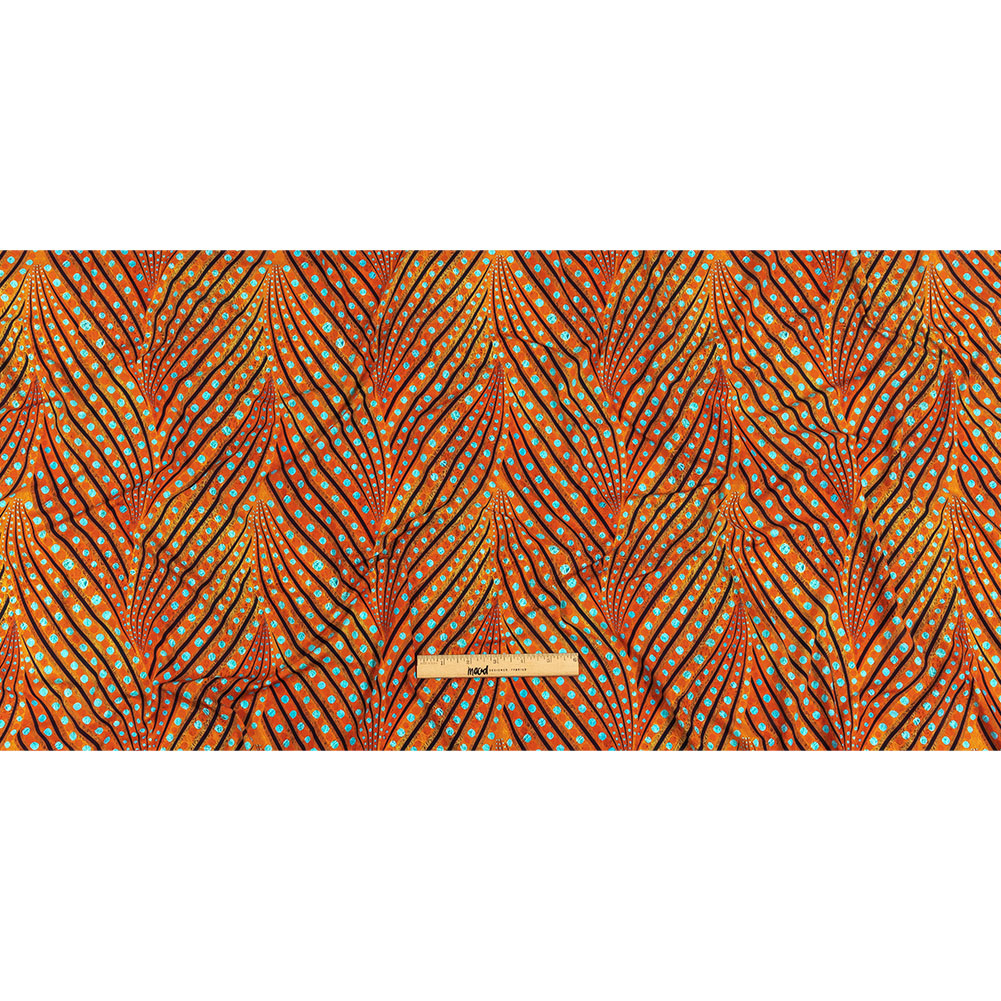 Orange, Espresso and Teal Art Deco Feathers UV Protective Compression Swimwear Tricot with Aloe Vera Microcapsules