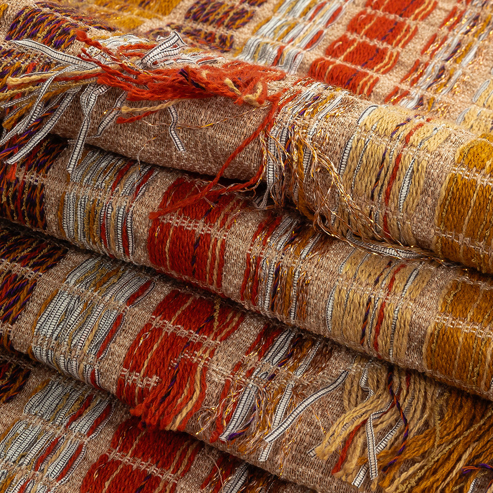 Orange, Honey Yellow and Beige Striped Fringe Novelty Woven
