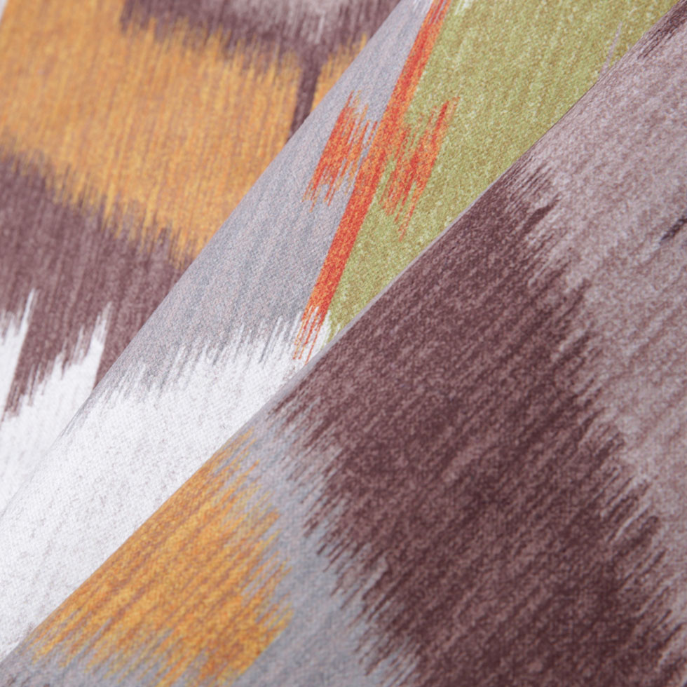 Step into the realm of captivating colors by adding this dynamic print to your future interior design plans. Presenting a bold, large-scaled, geometric ikat velvet involving a collaboration of oranges, greens, and browns. At a distant, this material comes off as if it were a typical woven or even a vinyl, but once your hand meets its surface, the intensity of its softness proves irresistible. This polyester velvet was produced with very short stable fibers which result in little to no sheen and a remarkably short pile. Backed by canvas, this home decor velvet fabric is great for upholstery projects such as seat cushions and couch covers.