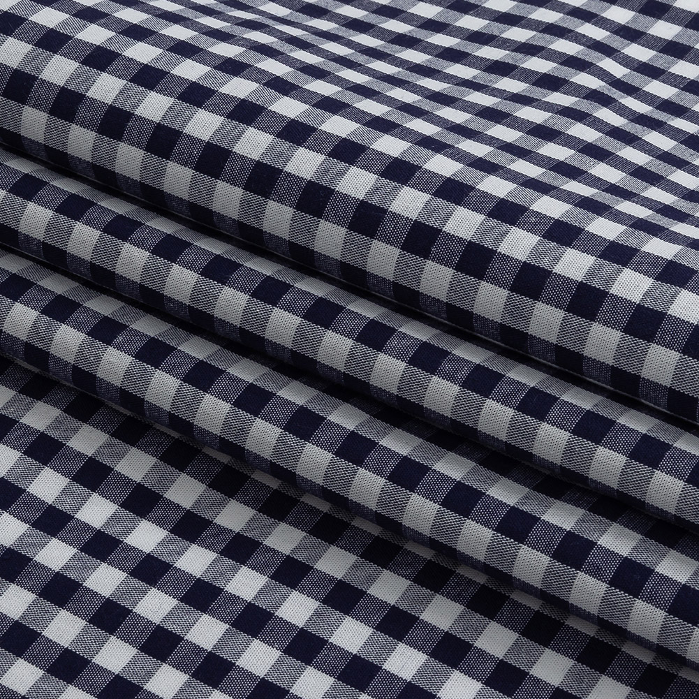 A timeless classic, this Londrina Navy Cotton Gingham is good for the environment as well! A delicate checkered pattern portraying a quarter-inch gingham in variances of dark navy blue decorates the white cotton base of this fabric.